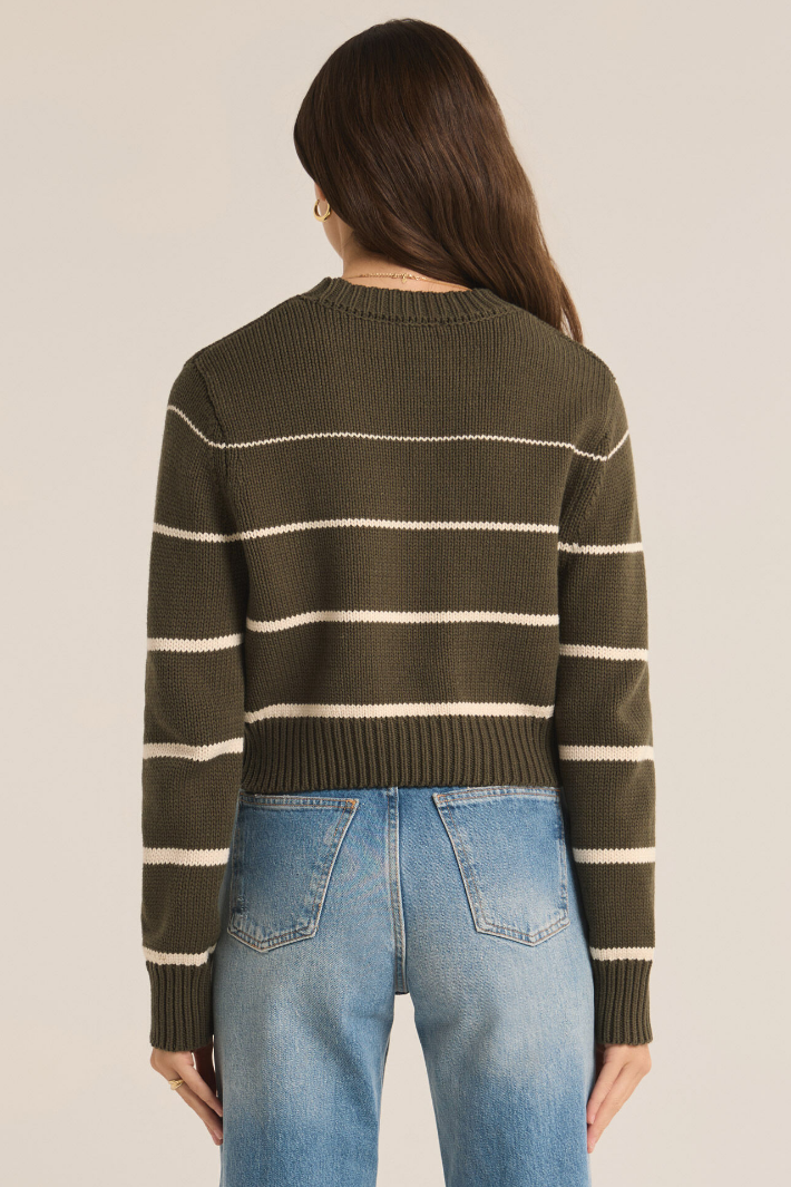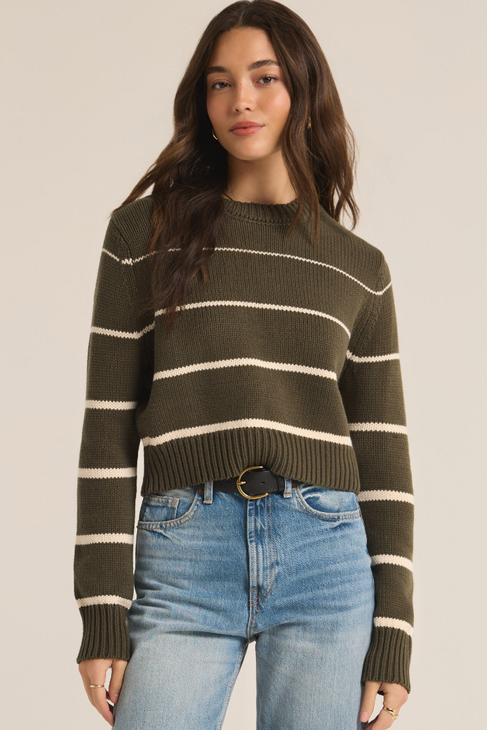 The Milan Stripe Sweater is a great addition to your closet for the colder seasons! This sweater has a slim fit with classic stripe detailing, along with a crew neckline.