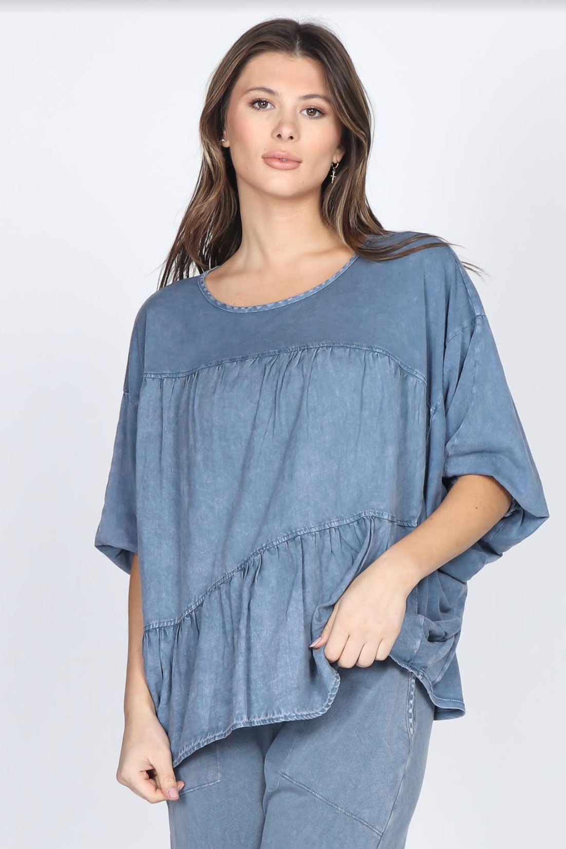 This mineral wash poncho is great for summer. Looks great with fitted white leggings, jeans or over a swim suit.