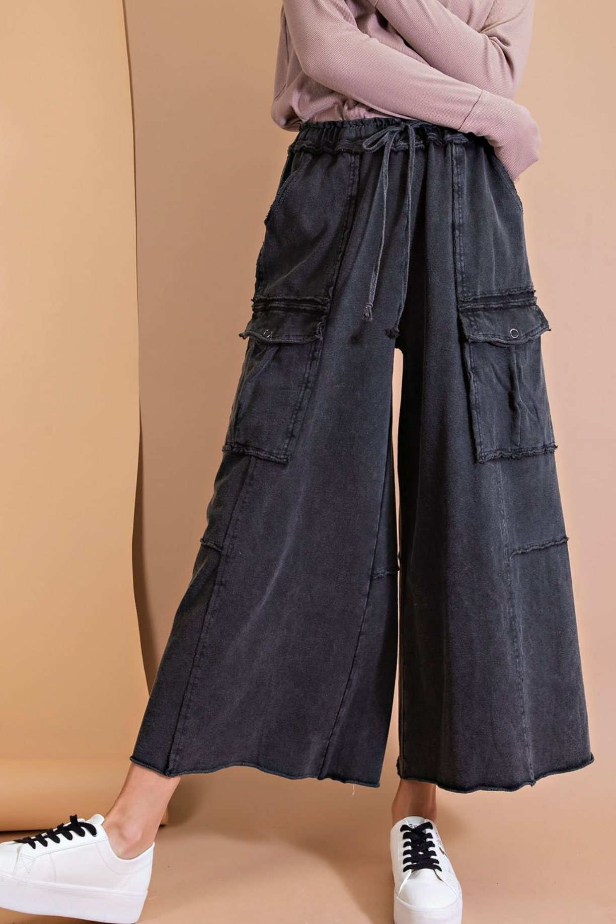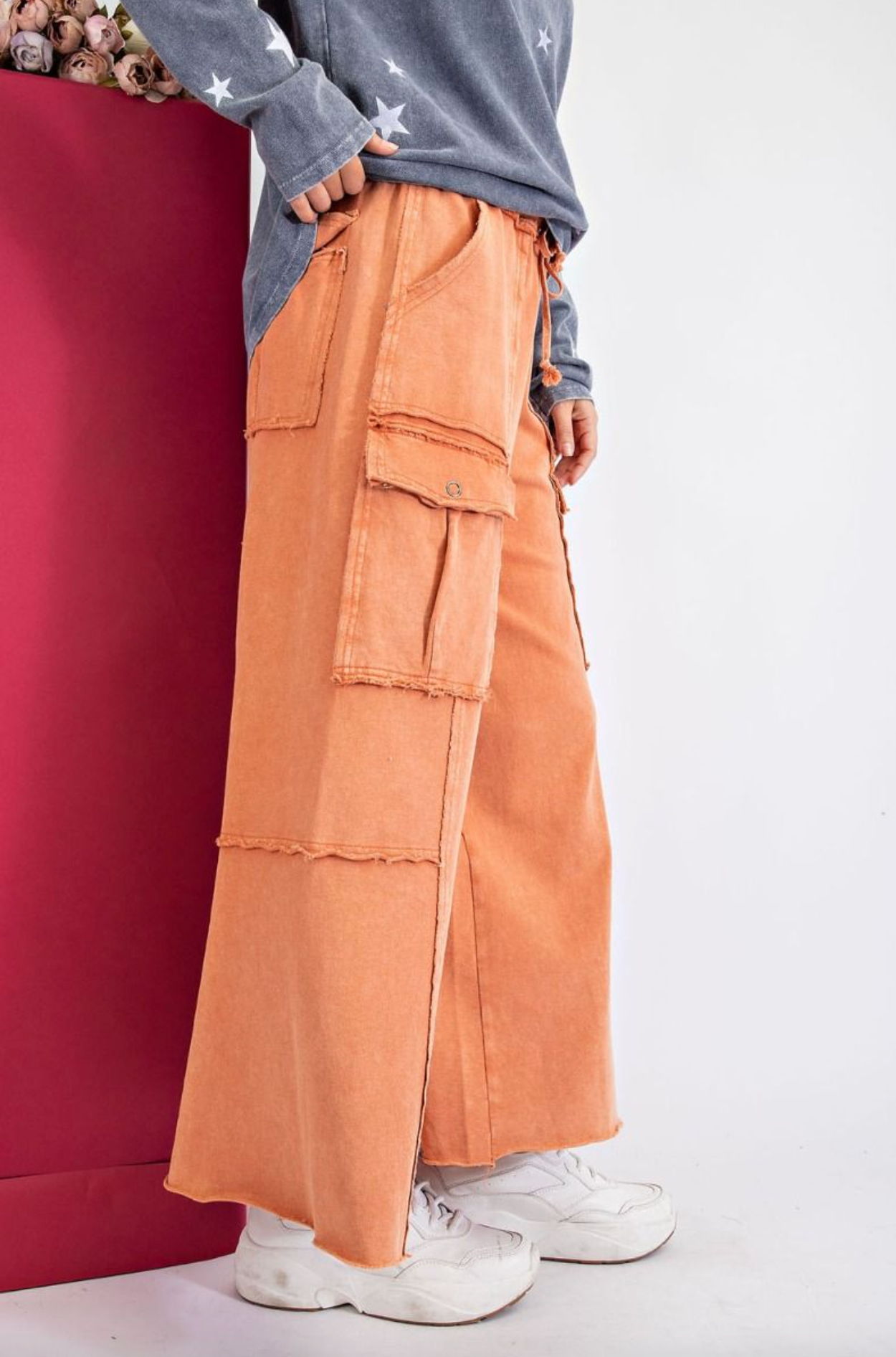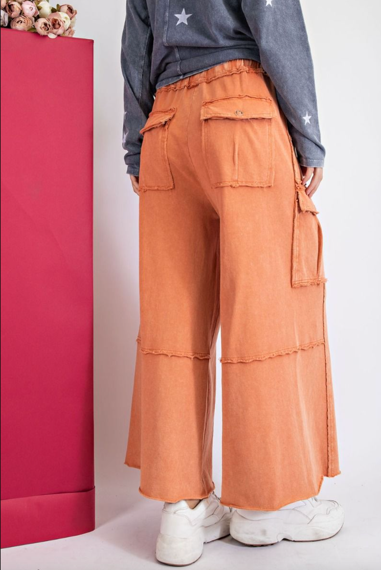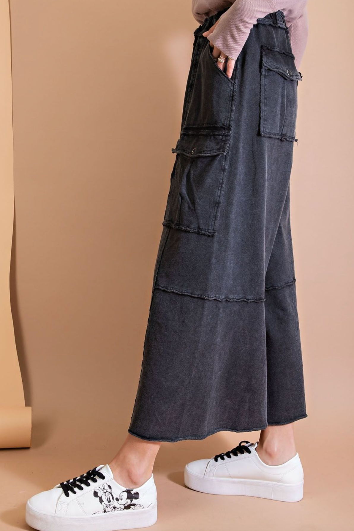 Mineral Washed Wide Leg Terry Knit Cargo Pants