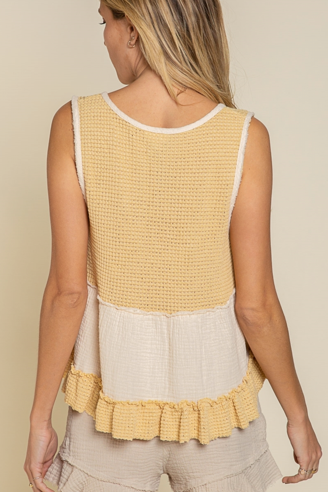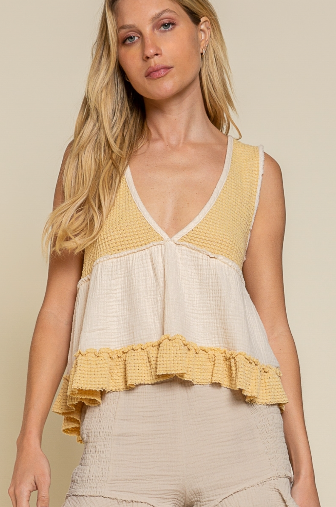 Designed in sleeveless with V-neck, mini babydoll fit with ruffle detail, featured in