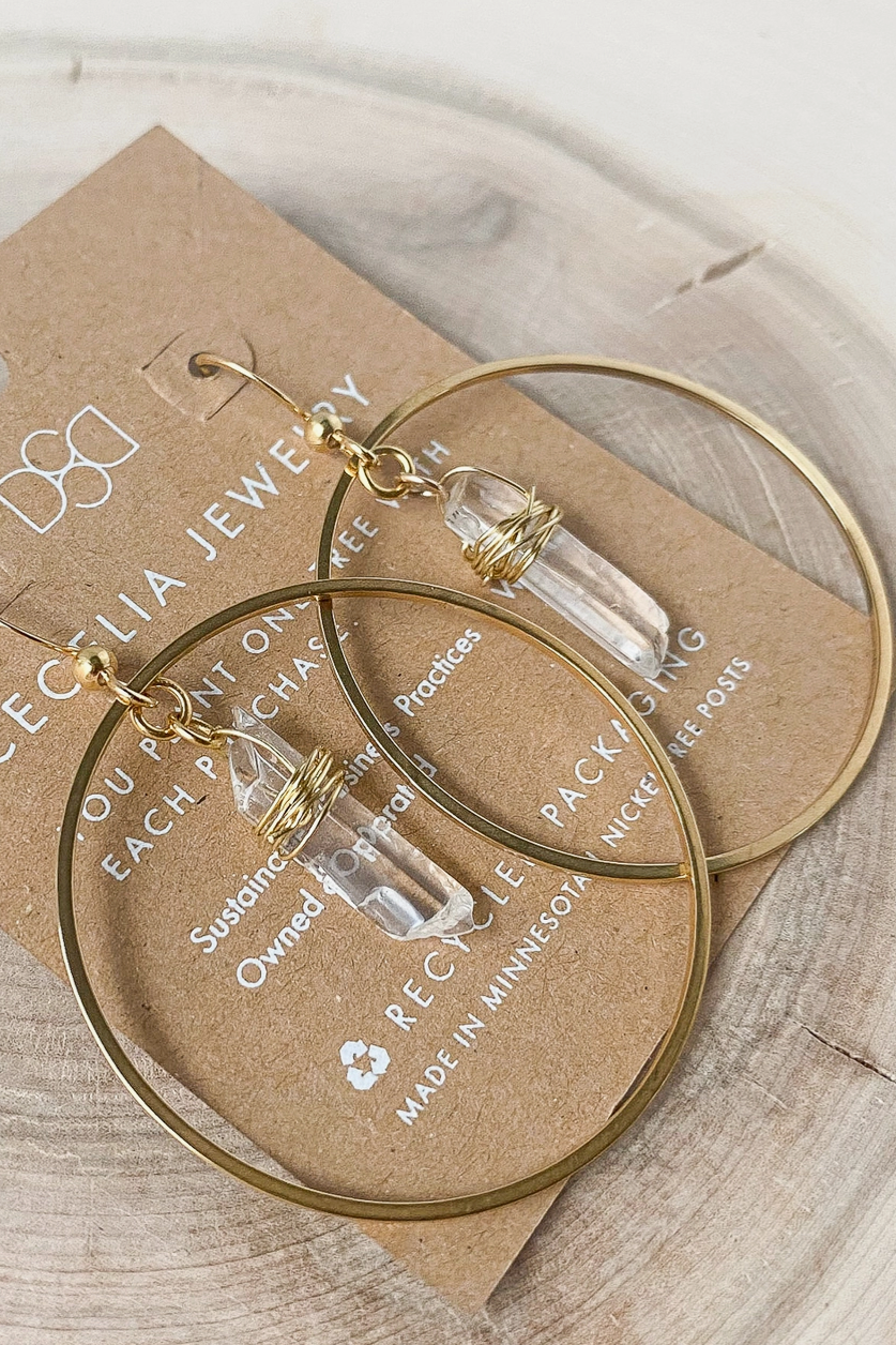 Crystal Quartz Handmade Gold Wire-Wrapped Hoops