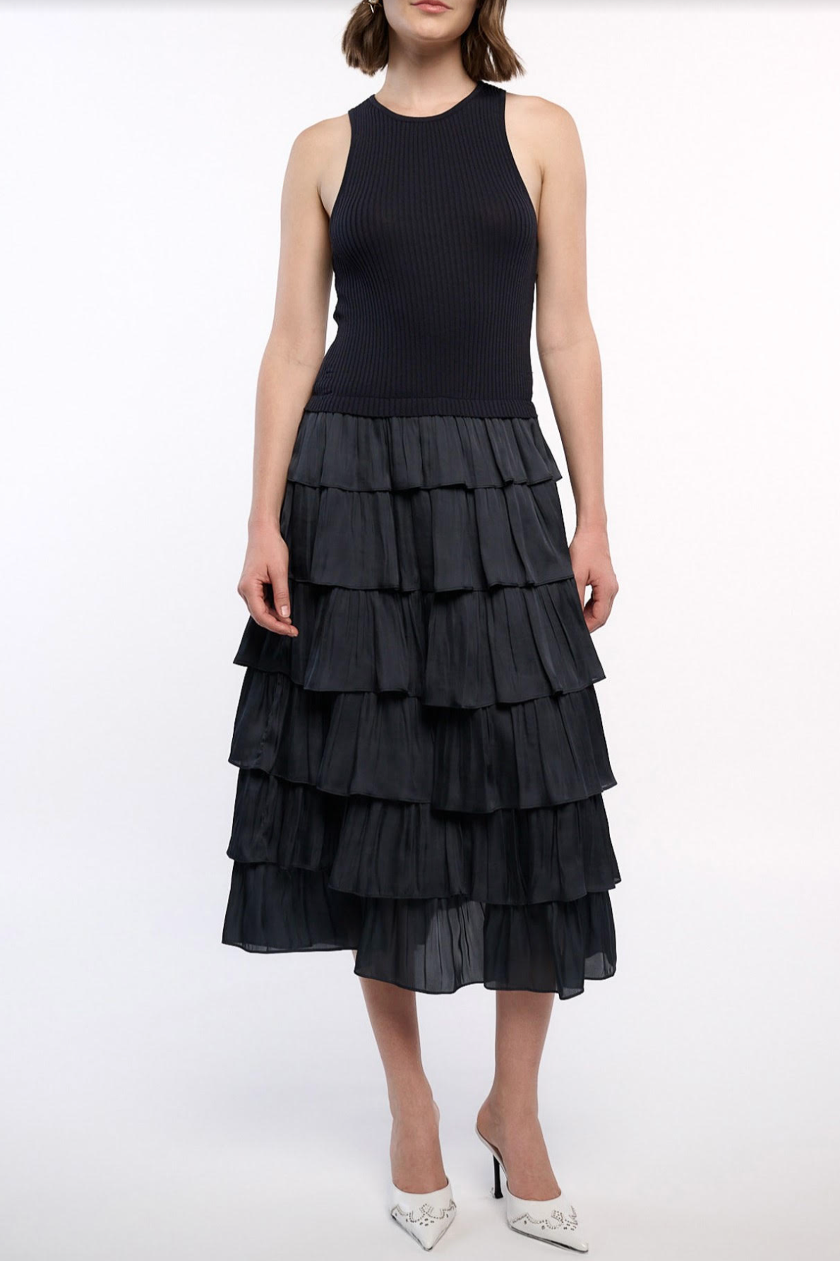 This mixed material dress is elegant and casual at the same time. Dress up with a pair of heels for a wedding or white sneakers and a denim jacket for a casual look!