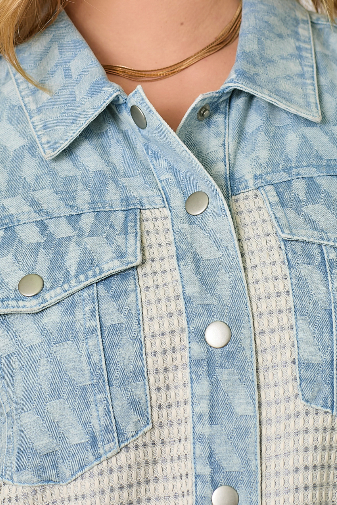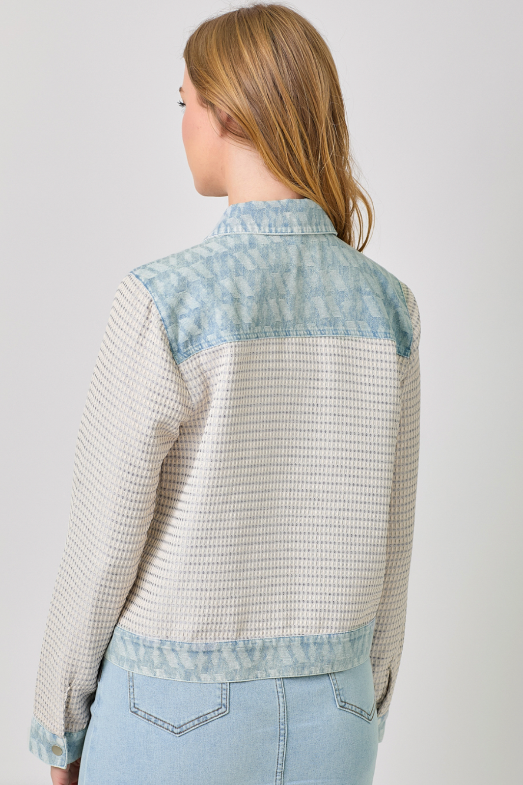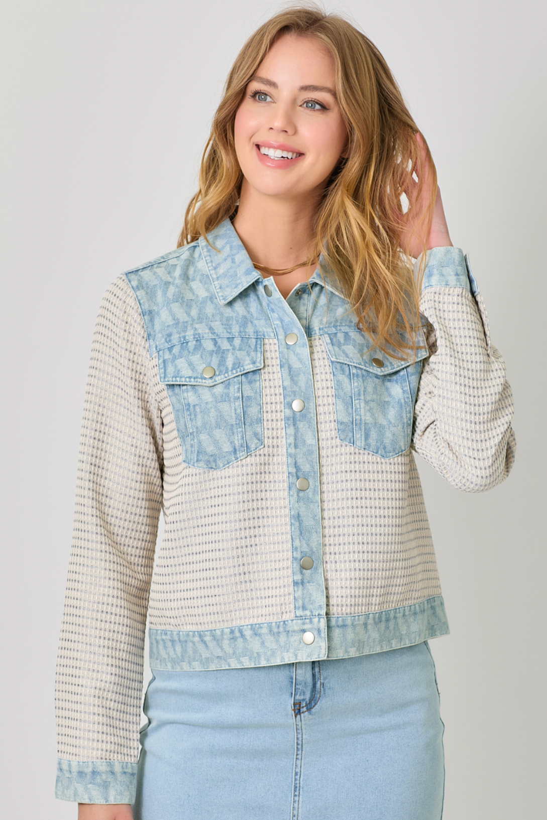 Try something new and stylish with the Mixed Media Denim Jacket. Offering a combination of denim and cotton blend material, this denim jacket is a must to wear over your next outfit.