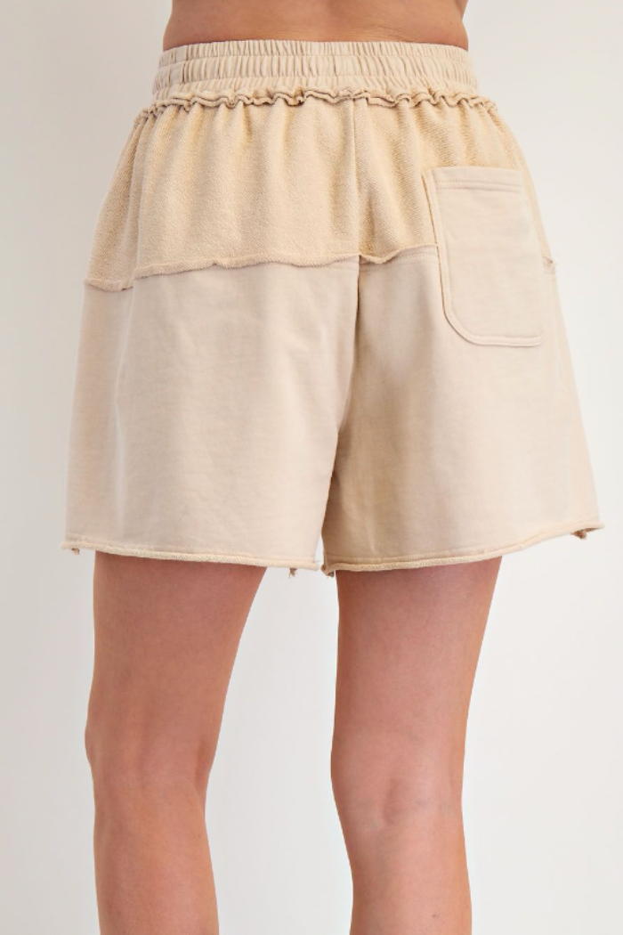 Get loungewear for the summer like the Terry Knit Short! These stretchy and relaxed shorts have a loose fit, complete with an elastic waistband with a drawstring. Featuring a raw cut hem and inside out texture block detailing for added flair.