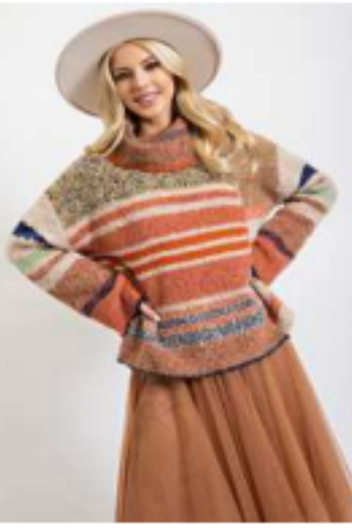 This mock neck sweater is a must have. Uber soft and cozy. This looks perfect with jeans or a skirt. Top it off with a brimmed hat.
