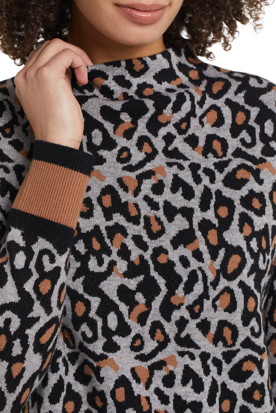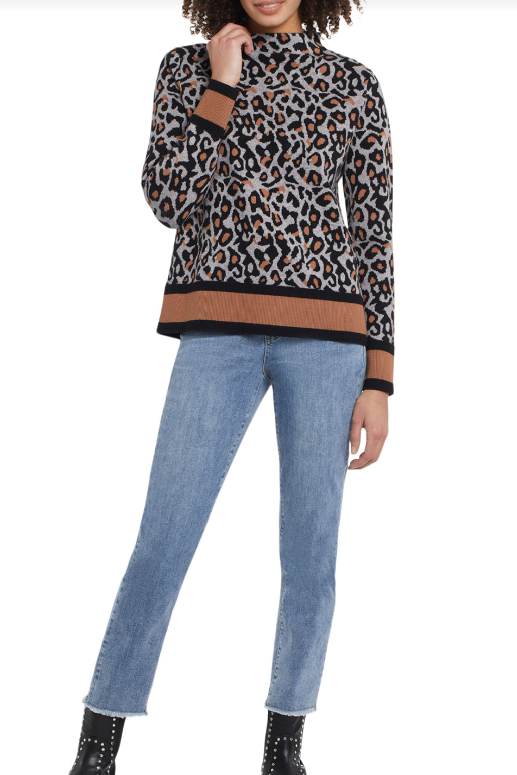 This animal print mock neck sweater is super versatile. Can be worn with jeans or dress pants.