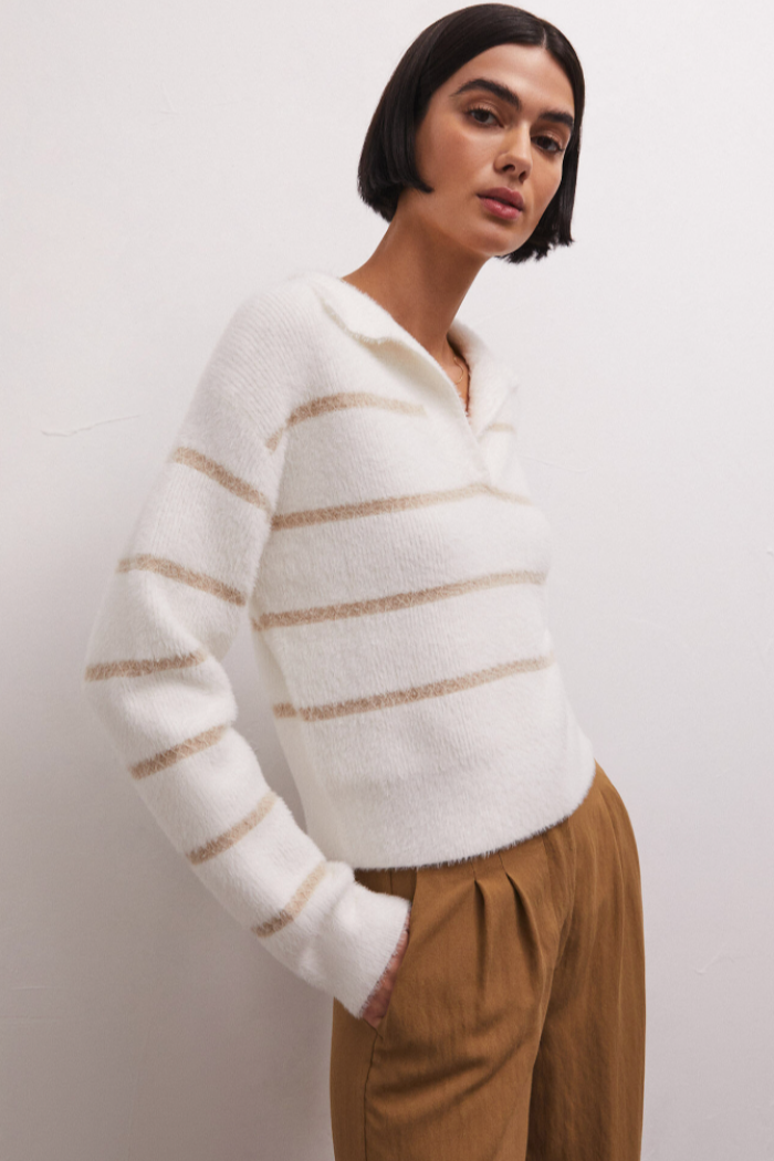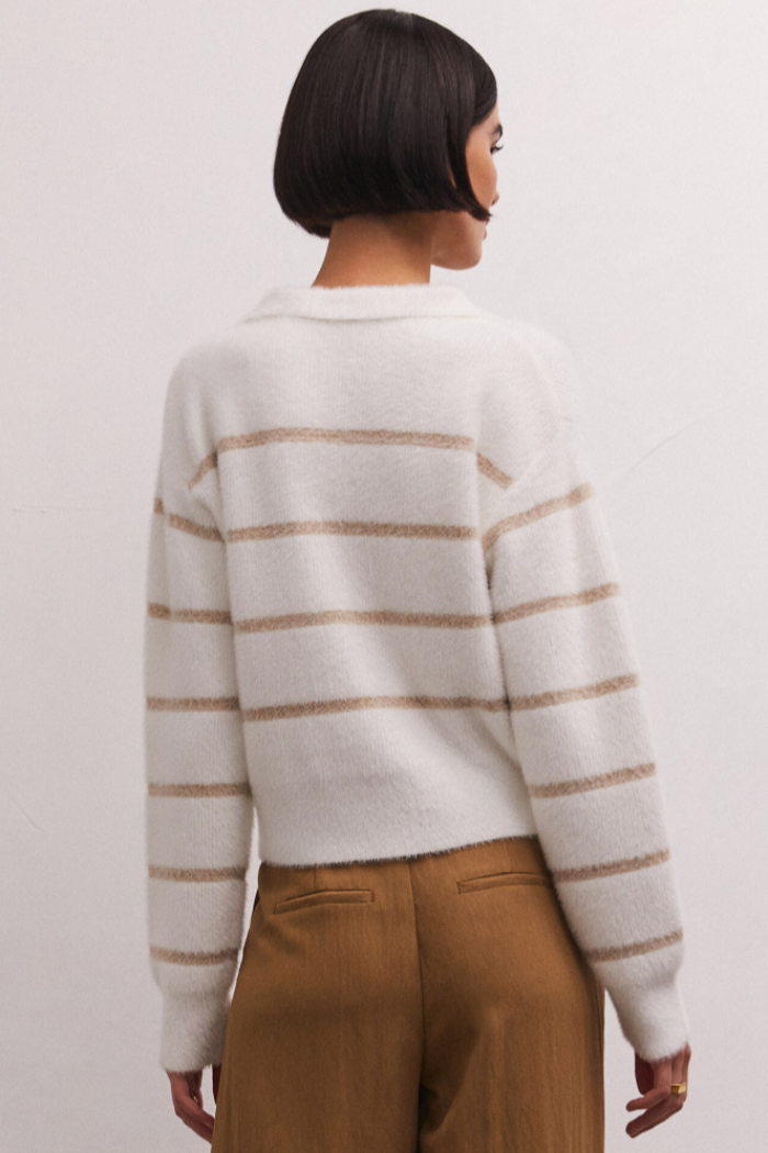 Wear this classic stripe sweater to achieve a clean and chic look. This sweater has a relaxed feel, letting you be cozy and stylish in this top!