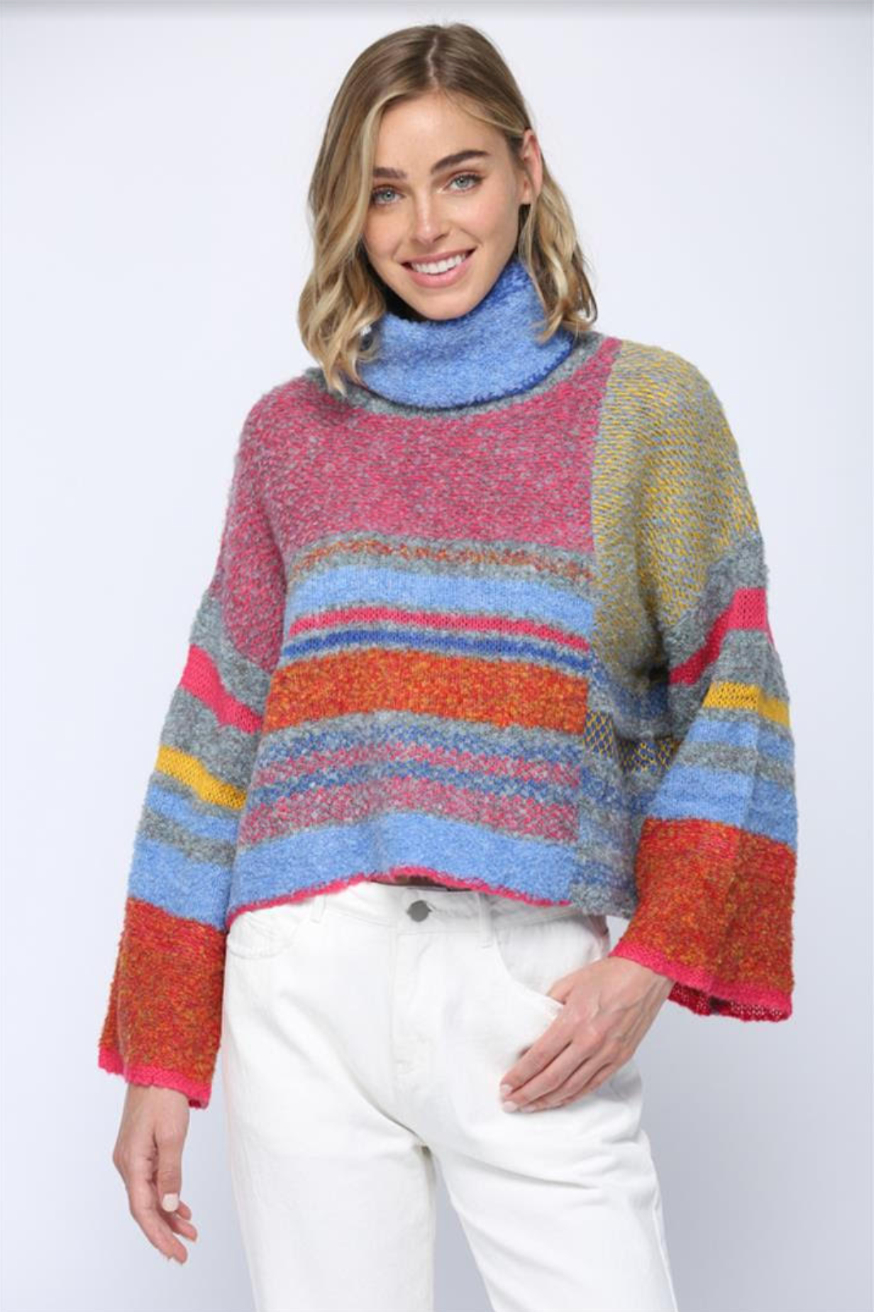 This multicolored knit sweater is great for a pop of color for fall. Its super cozy and great to wear anytime.