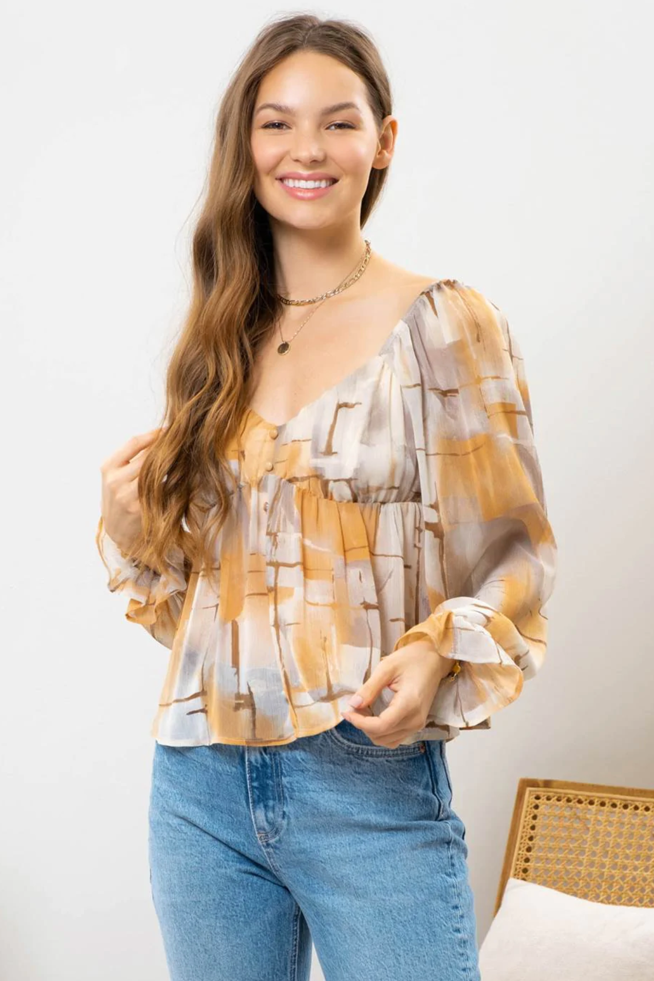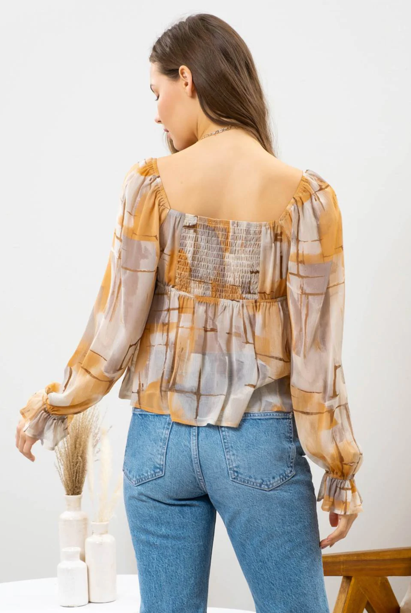 This peasant top has great color combos for fall. It looks great with denim jeans and boots for a date night or night out.