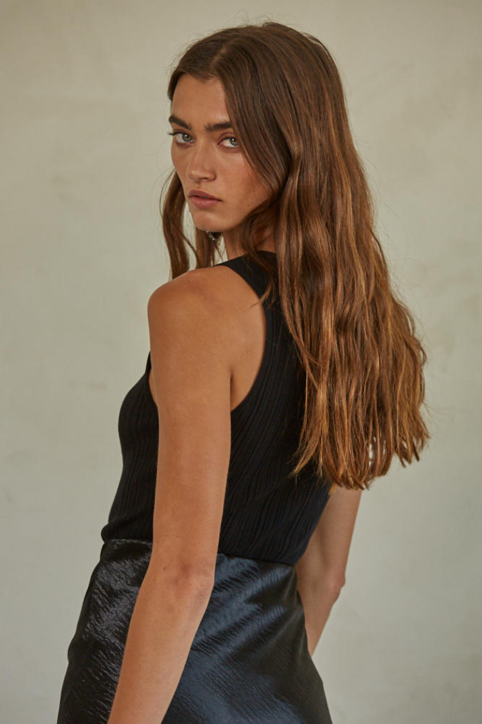 Knit Sweater Viscose Nylon Ribbed Boat Neck Sleeveless Top