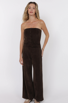 Tube vest jumpsuit with a wide leg and faux pockets.