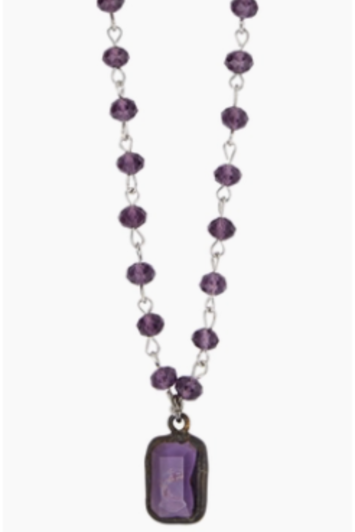 Necklace with 16" Purple Crystal Necklace with Soldered Purple Crystal