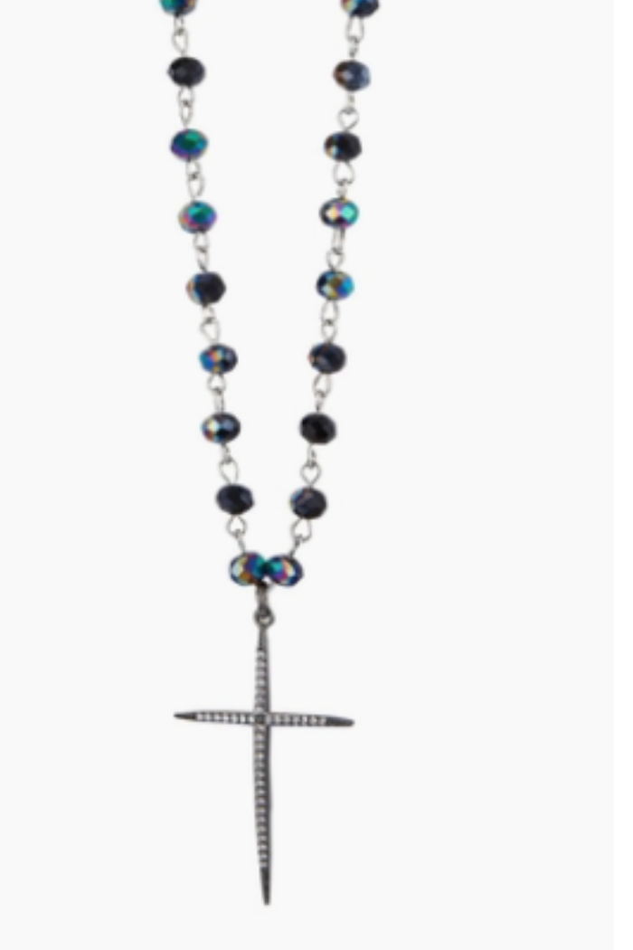 Necklace with 18" AB Black Crystals with Pave' Cross