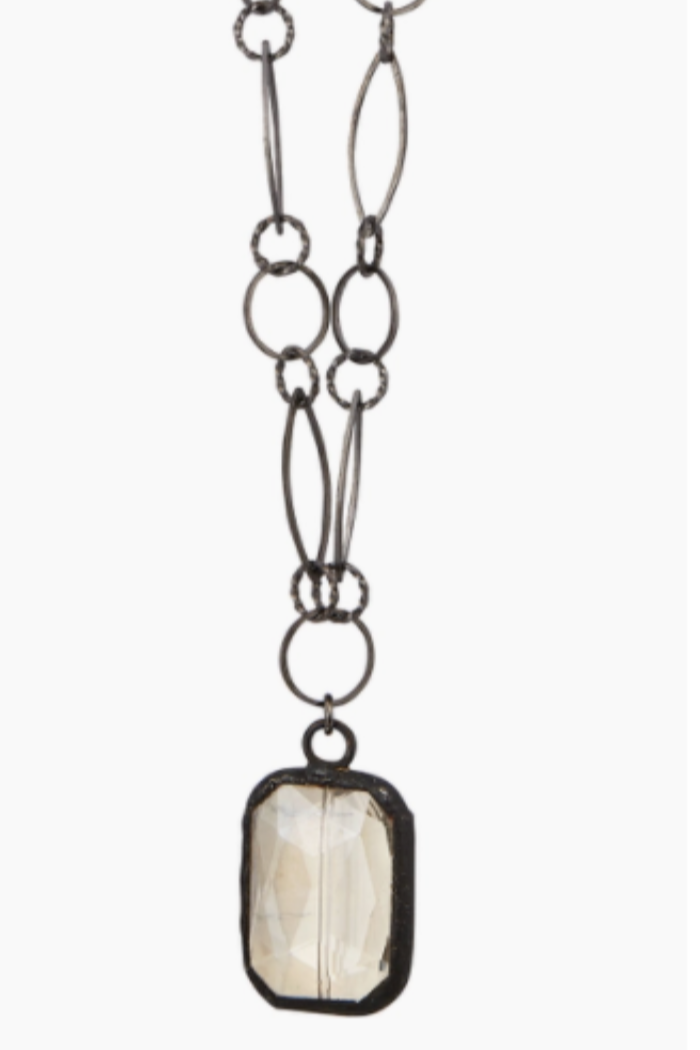 Necklace with 24" Hematite Chain and Soldered Crystal
