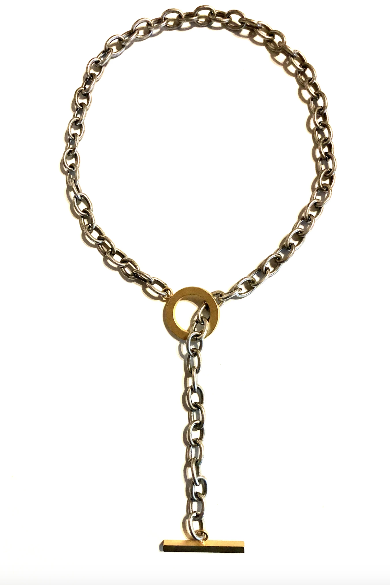 Toggle necklace with mixed metals is an easy statement necklace. Can be worn multiple ways (Necklace or a wrap bracelet).