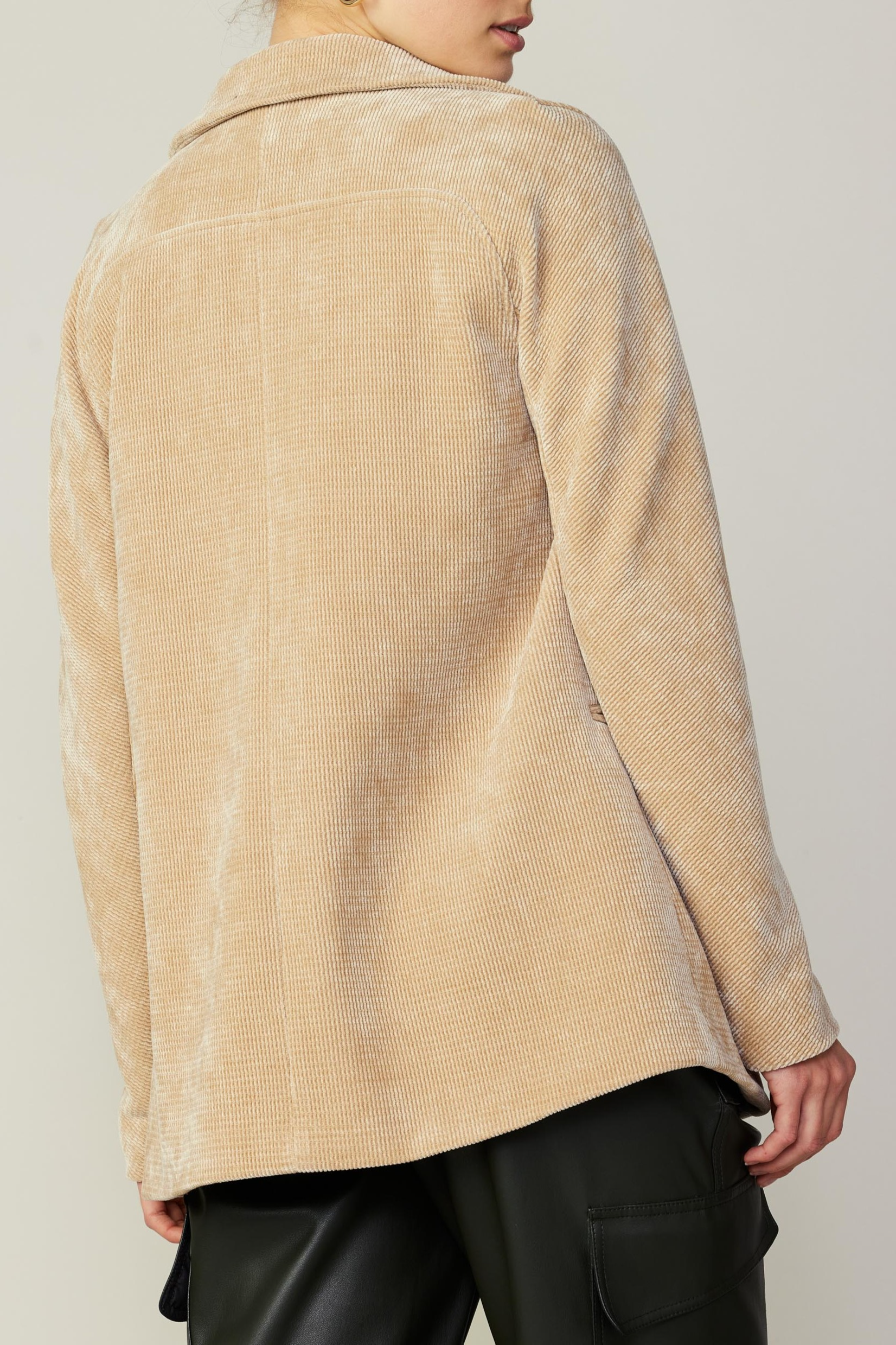 This neutral tone blazer is a great basic and essential item. Can be added over a casual look with jeans, or can be put over more formal attire.