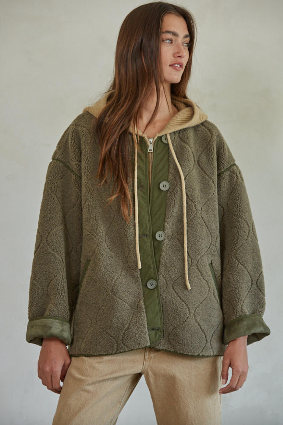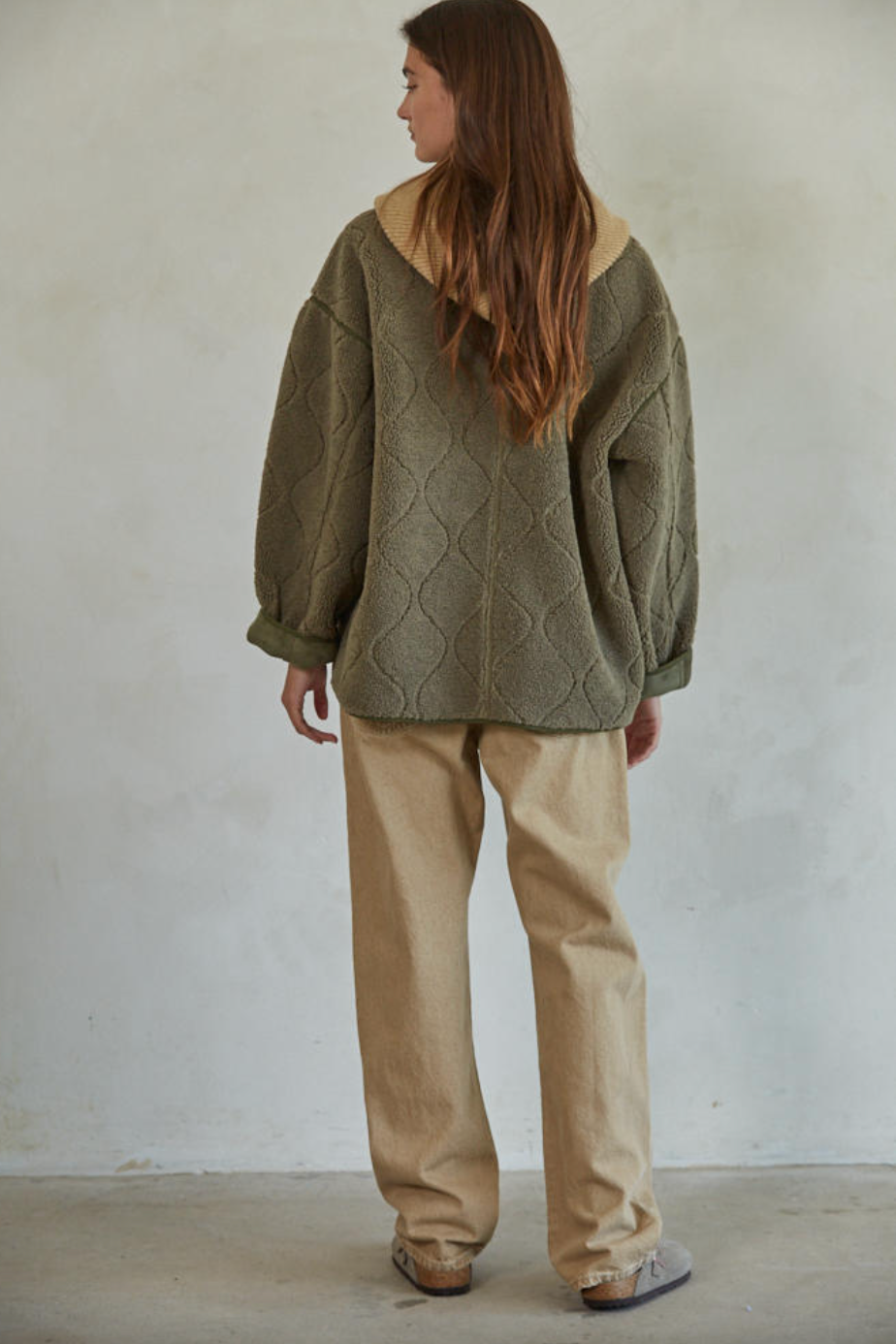 Woven Polyester Fleece Button Down Round Neck Long Sleeve Jacket With Pockets