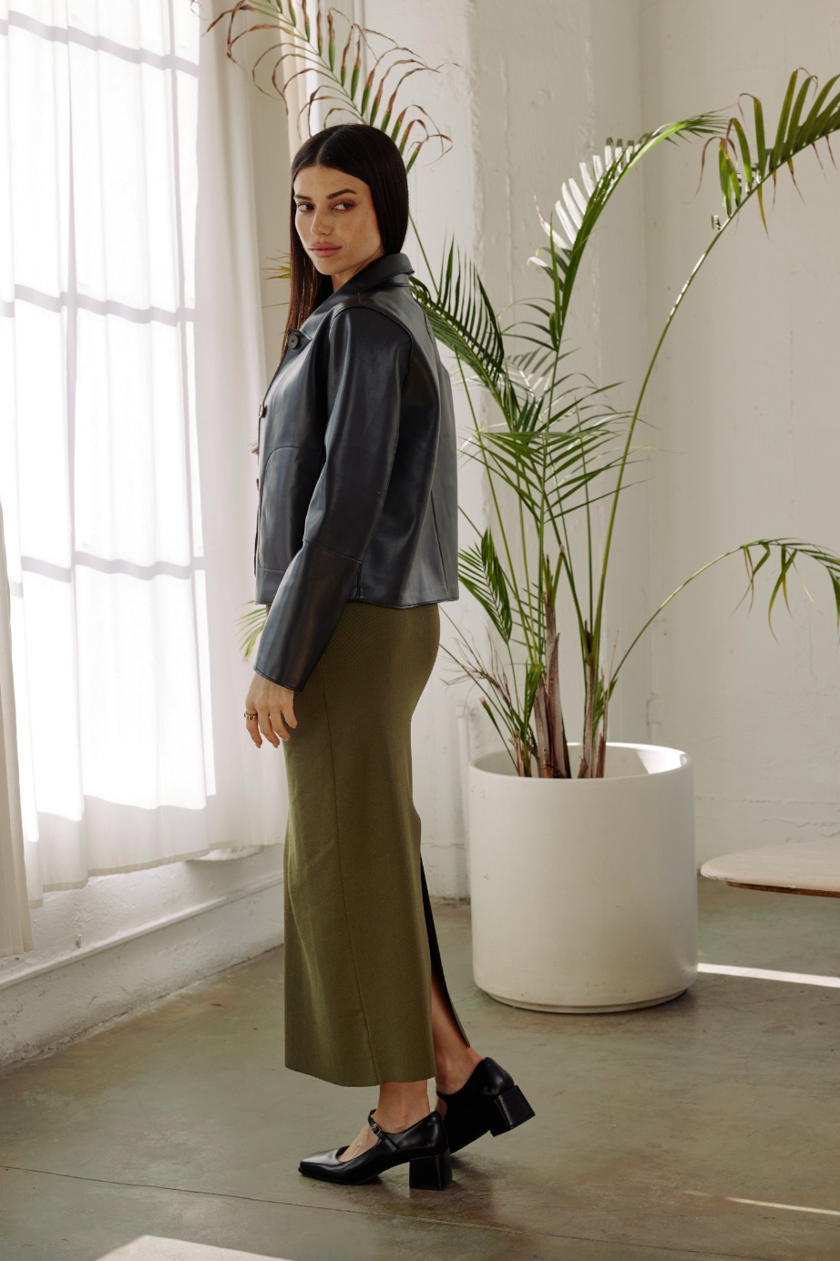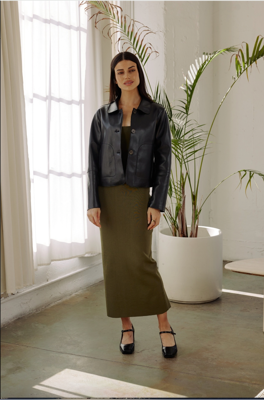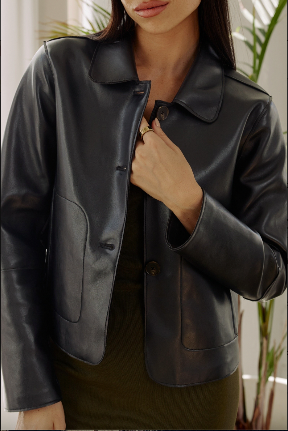 Your new wardrobe staple - The Nicolette Jacket. It is a faux leather jacket that's single-breasted, cropped in length, and features pockets for functionality. This style is sure to add some edge to any outfit. It can be paired casually with denim or dressed up with your favorite formal skirt.