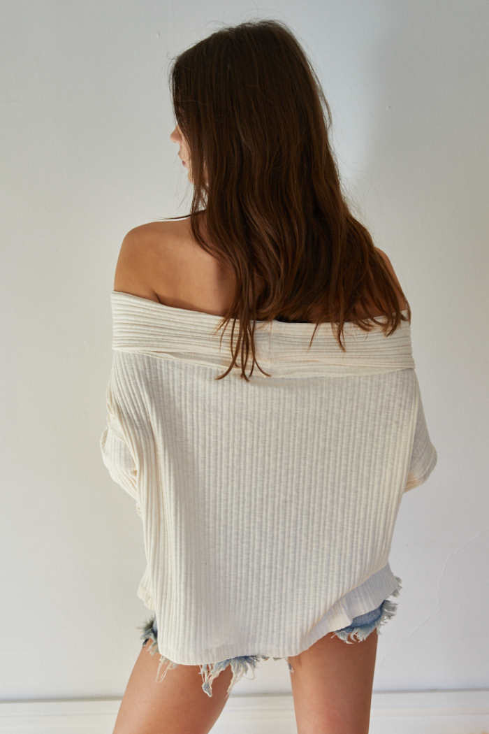 We love the cozy off the shoulder vibe this top gives off. Evening out or weekend wear. Pair with worn denim shorts or your favorite slacks.