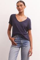 A new tee silhouette to fall in love with! The On Repeat Slub Tee is made using our Cotton Slub Jersey fabric and was given our "sun drenched" wash in all colors except white. It features an exaggerated slightly u-shaped v-neckline, easy relaxed fit, and slightly shaped hem. We love it with denim.