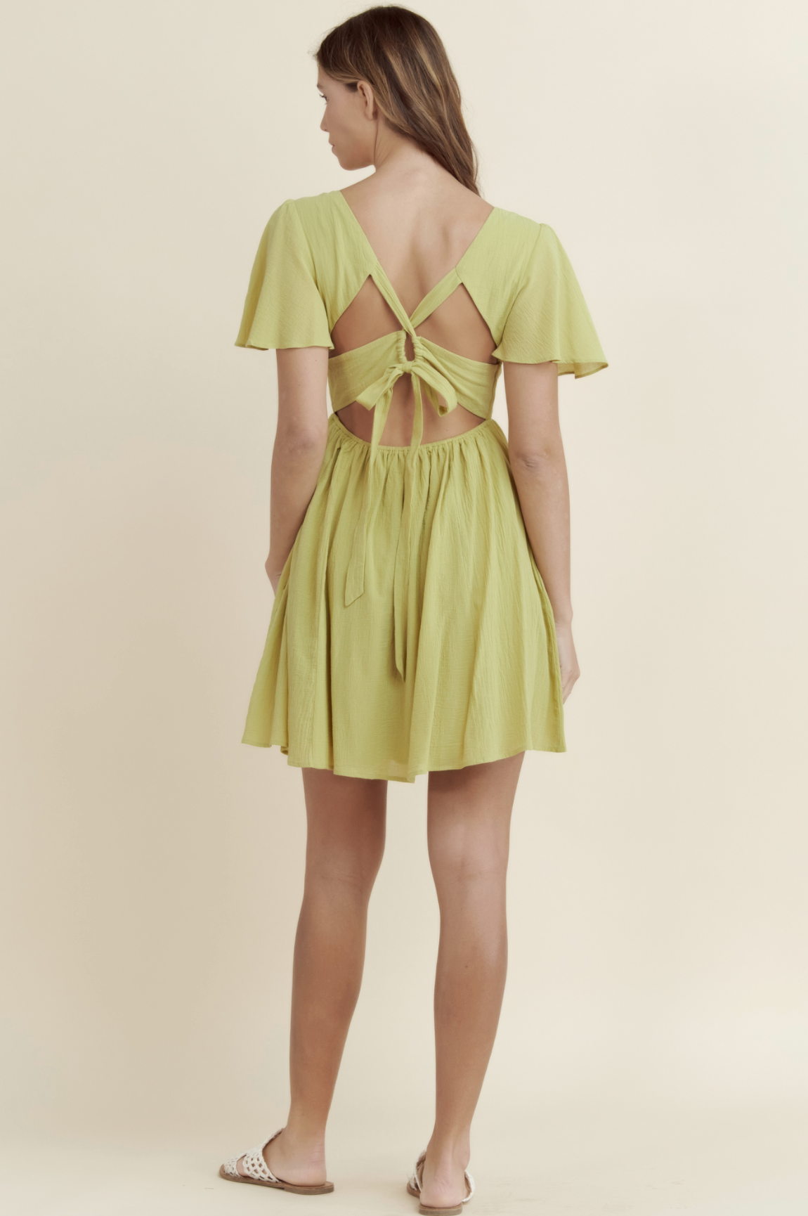 This lime dress is amazing for summer. The open tie back detail is so cute and the dress has pockets!