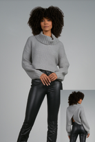 Open back turtle neck sweater is great for fall. The open back adds a great detail to the basic fall sweater.