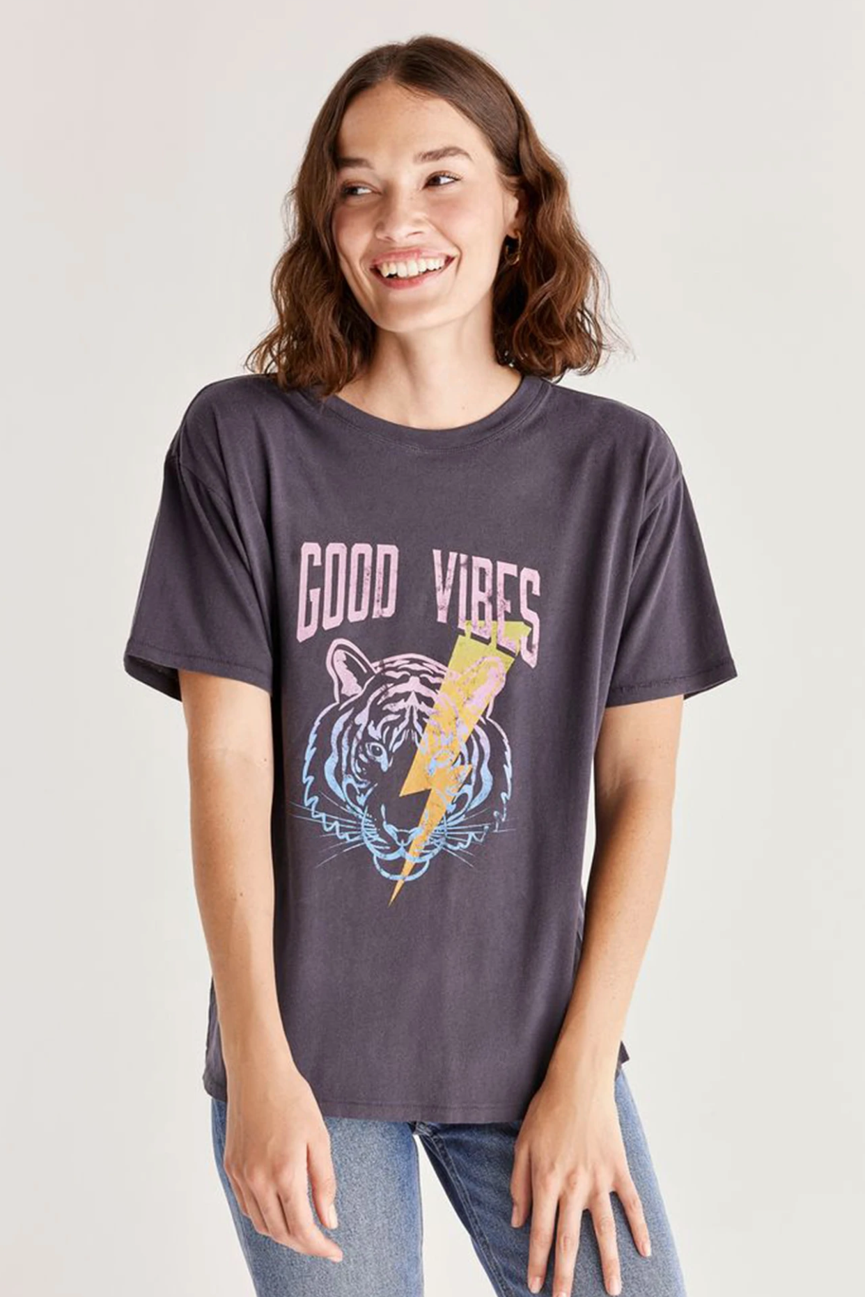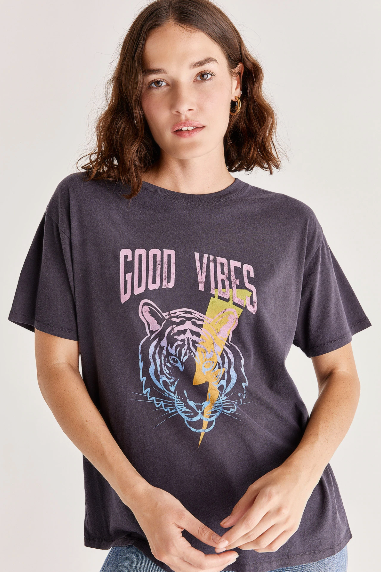 You'll want to wear this tee non-stop with its tiger and lightning bolt print, and soft 100% organic cotton fabric. Over jeans, joggers or even a skirt, this tee has you covered.