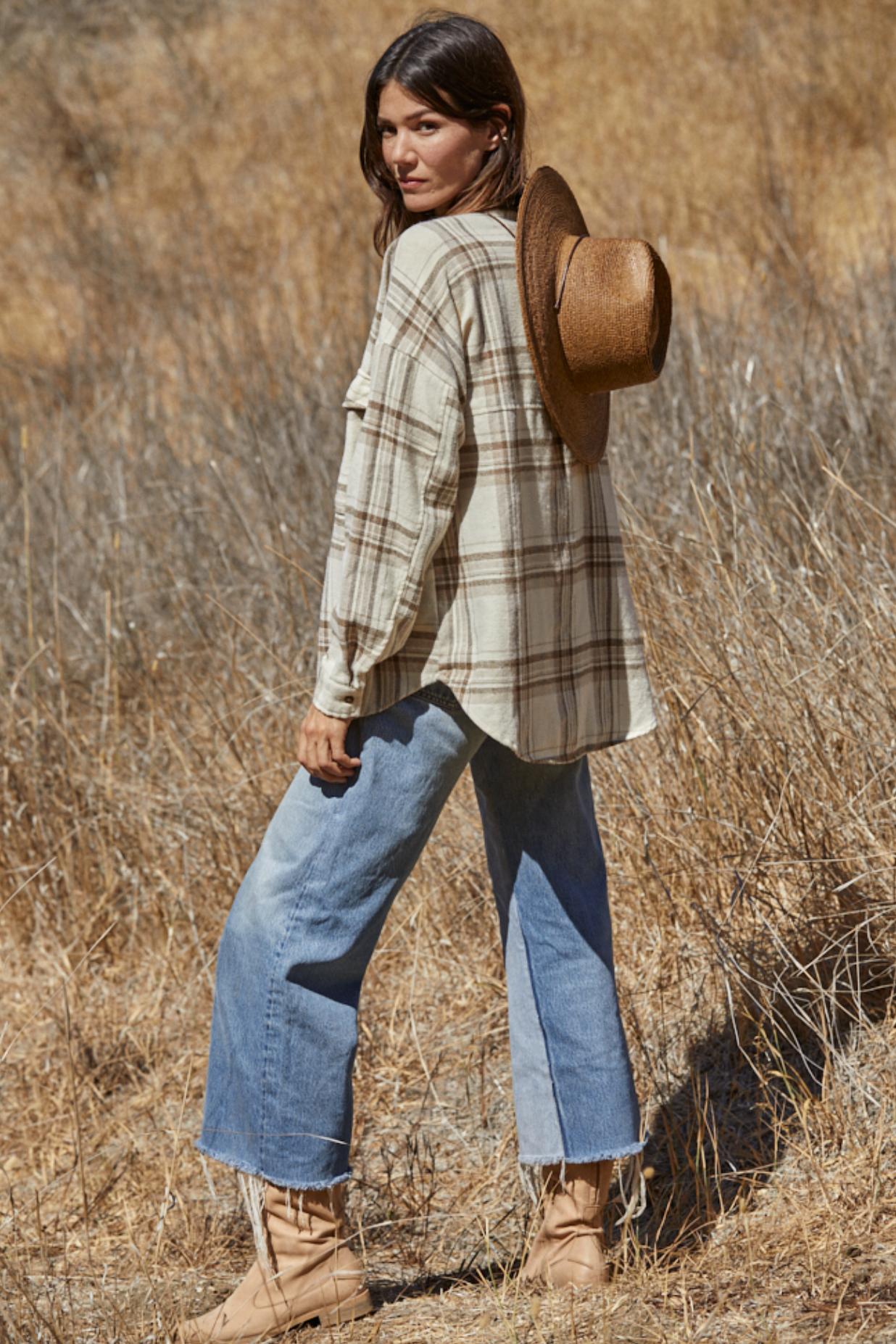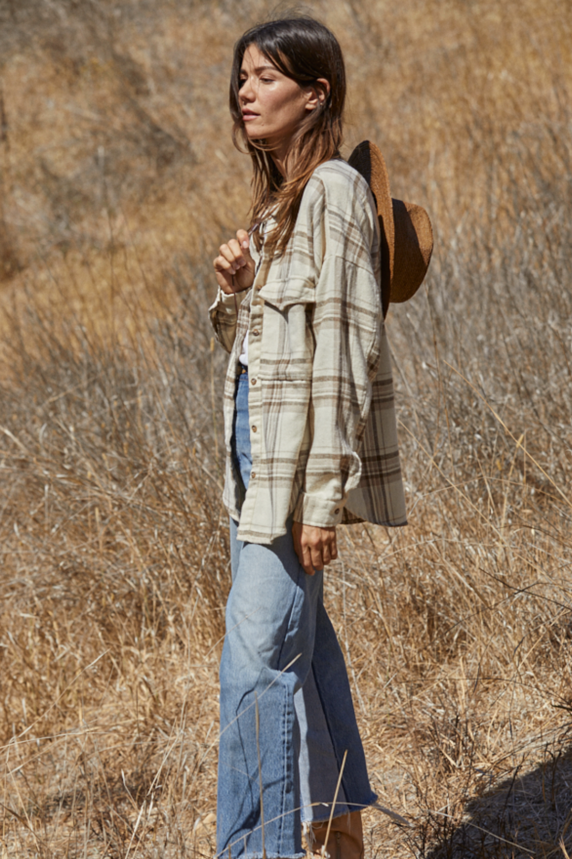 Woven long sleeve plaid flannel is the perfect oversized top to wear. Great to layer with leggings or jeans.