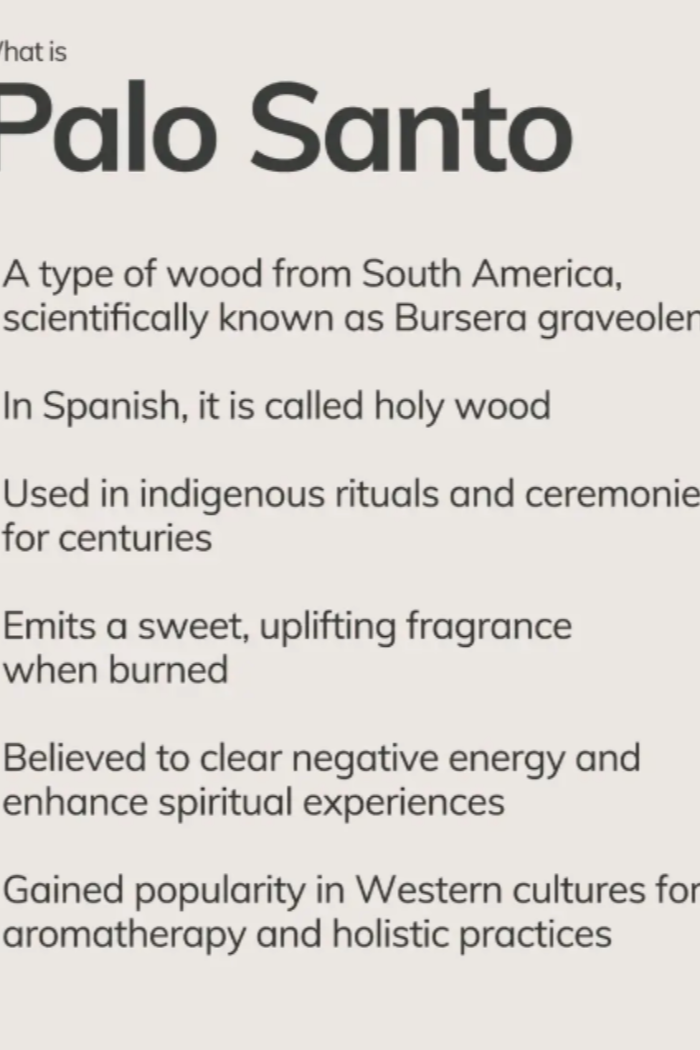 Description: Palo Santo (Bursera Graveolens). It is also known as the Holy Wood; which has been used by Indigenous Amazonian and Andean healers in sacred rituals to purify, attract positive energy and bring peace around them. They are 100% natural without chemical ingredients. Scent: Pine, Mint, Lemon, Fireplace, Sweet.
