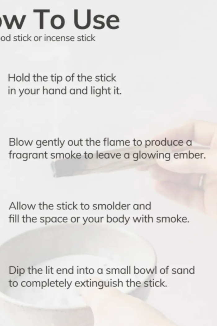 Directions: Hold at an angle pointing down. Light the tip and blow out the flame so that only smoke is produced. Place in an incense holder and allow the incense to linger. When finished, extinguish in sand.