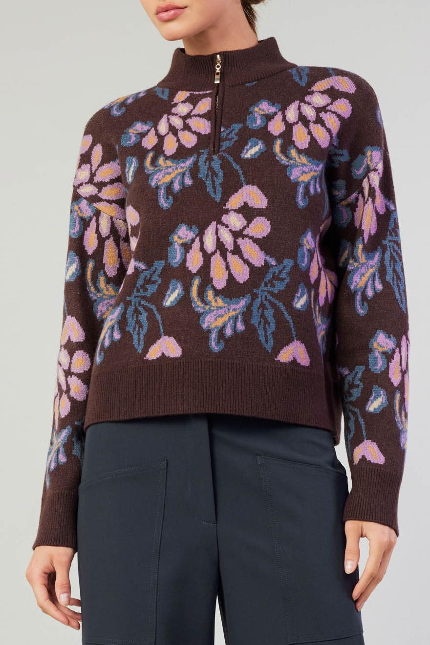 The perfect sweater is here. Spun from soft yarns, this style is jacquard-knitted with long sleeves and a multicolor floral motif that can't be missed. A mock neck with a half zip completes the look, letting you adjust the neckline to your liking. Relaxed Fit