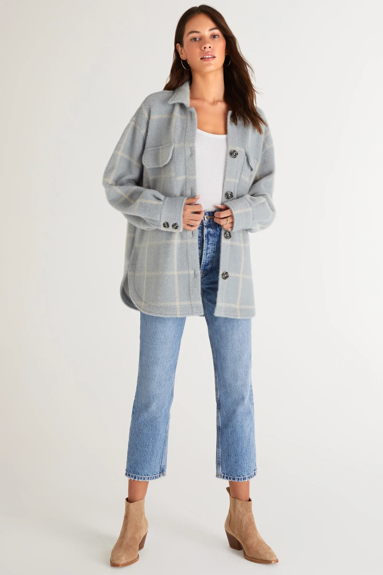 The Plaid Tucker Jacket is even softer than it looks! This cozy plaid jacket is made from our soft sweater knit fabric which features plenty of stretch, making this jacket so comfortable. You'll fall for the oversized fit and instant on-trend style you get when you put it on.
