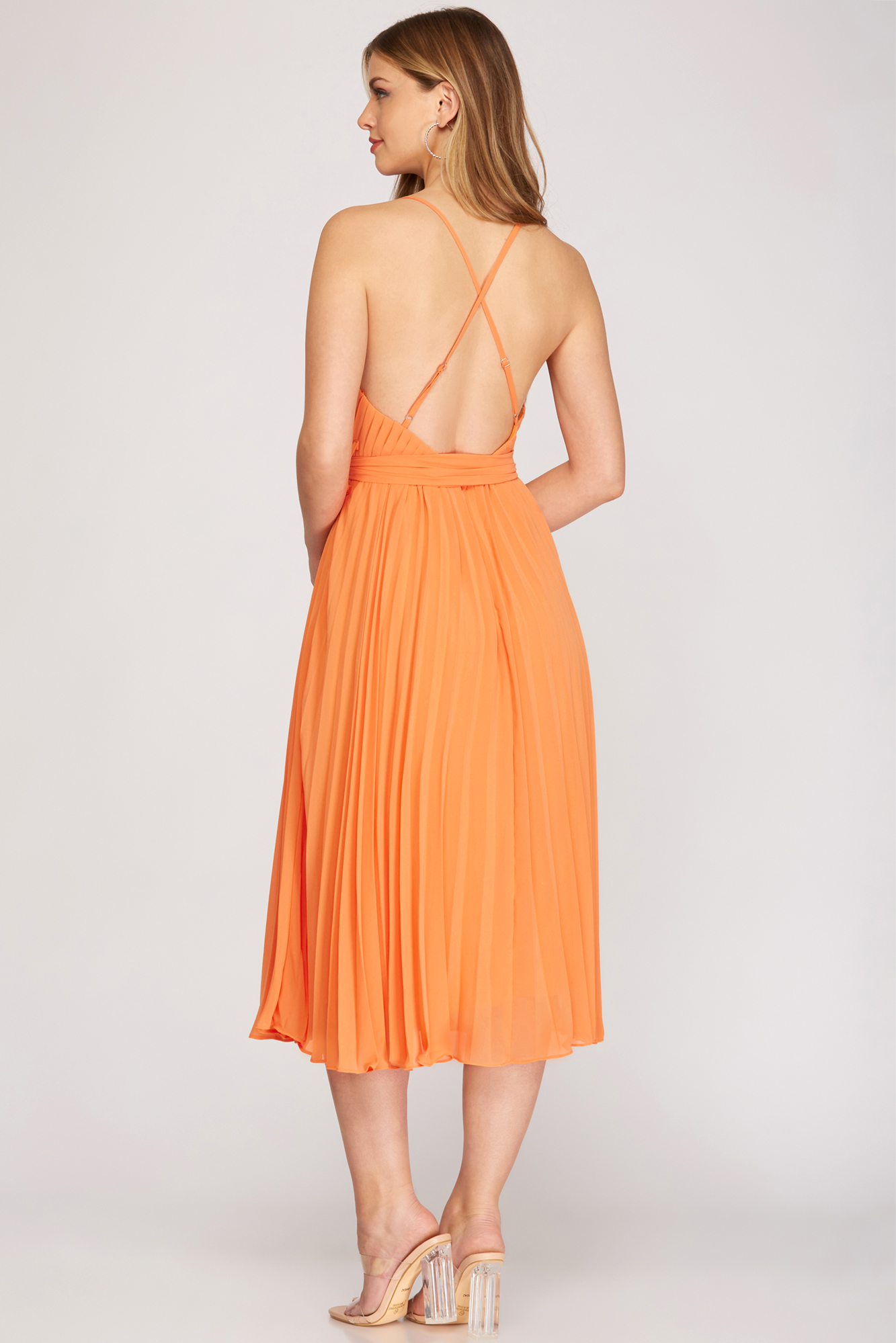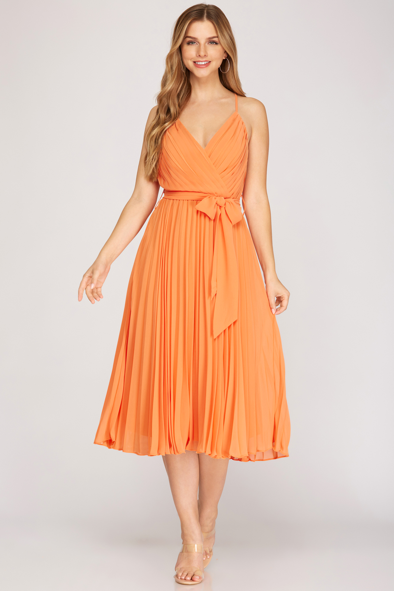 Even or dinner for the evening. This pleated dress has a swing and perfect to pair with wedge heels.