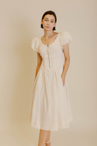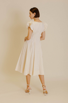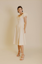 With a classic romantic boho look. This dress can have a country flare paired with a hat and boots or wedge heels. The soft flowy cotton is perfect on a summer day.
