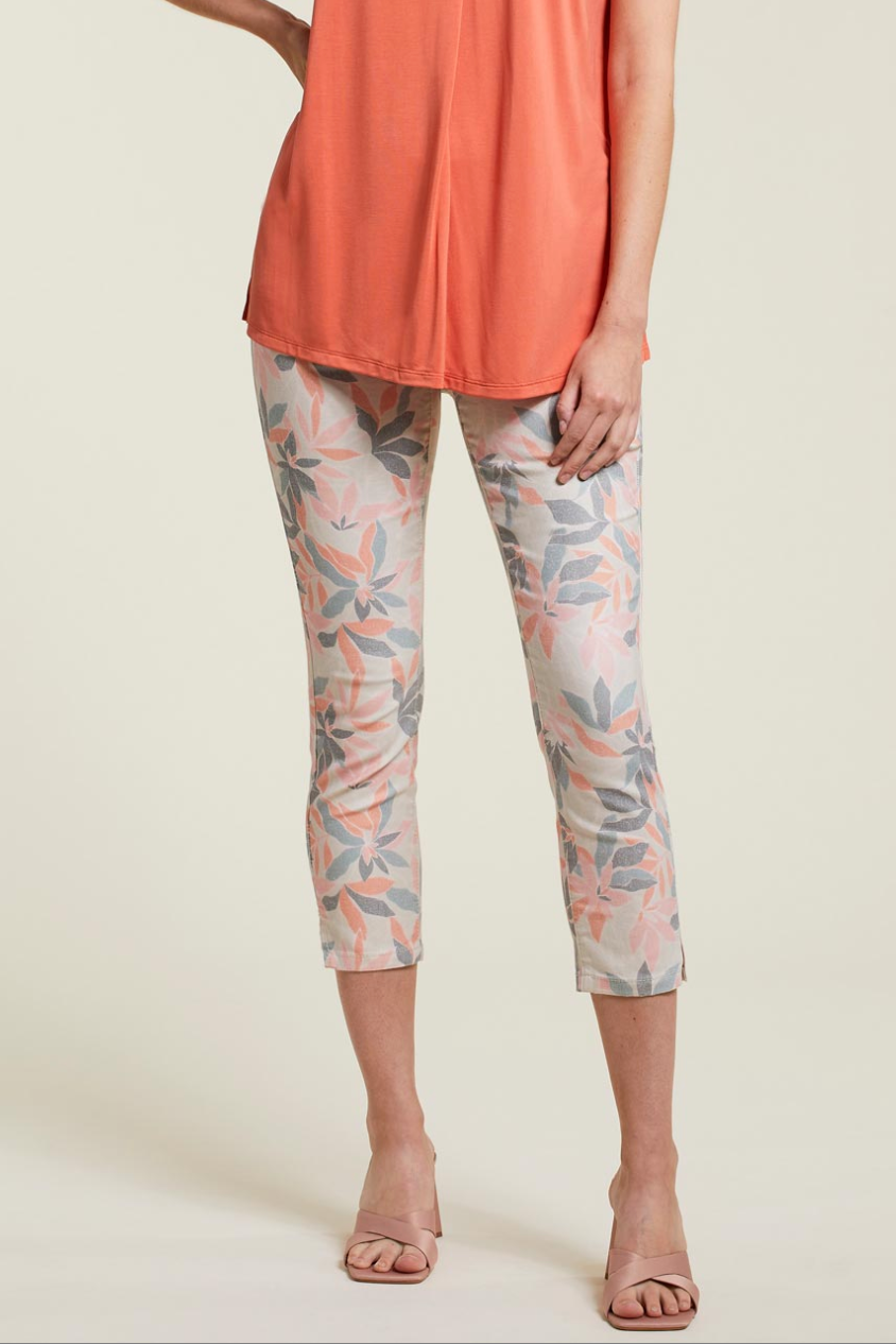 Printed Pull-On Side Slit Capris