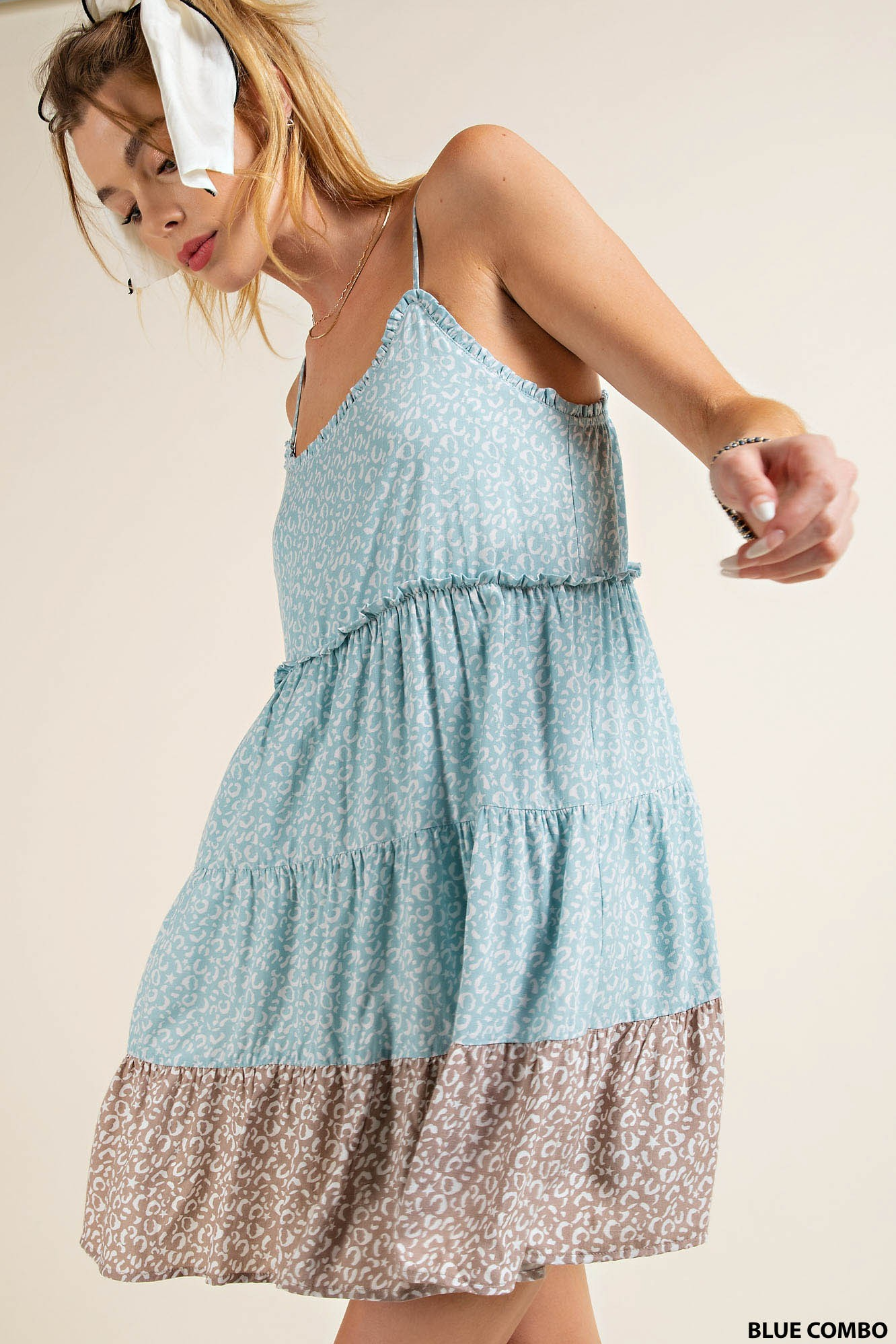 This sleeveless baby doll dress is perfect for summer and looks great with a pair of white sneakers. The tiered bottom is a great contrast.