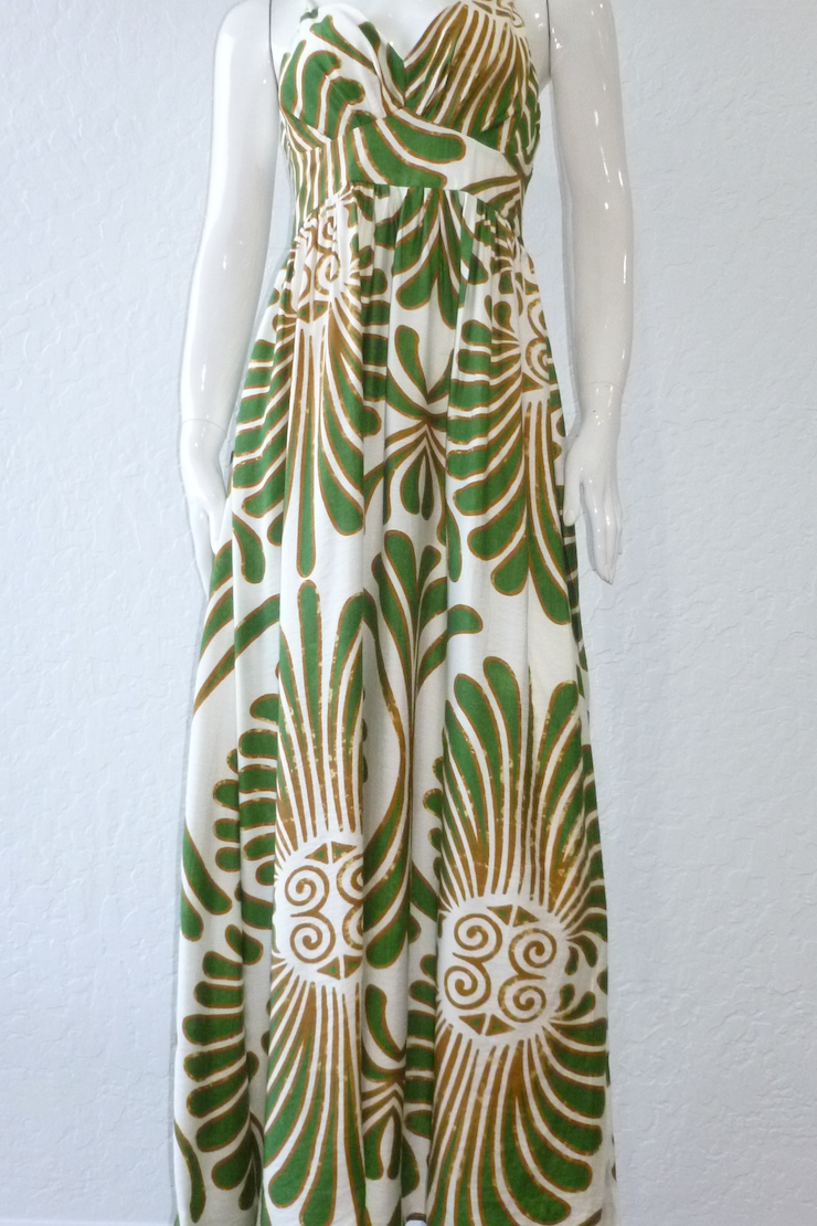 Show stopping summer dress. The design, color and flow of this dress compliment the lines and cuts. Pair with wedge sandals