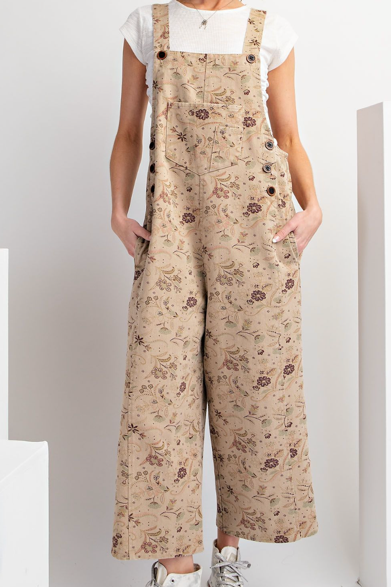 This jumpsuit with flower detailing is adorable for spring/summer! With adjustable straps, the printed jumpsuit has a loose and relaxed fit.