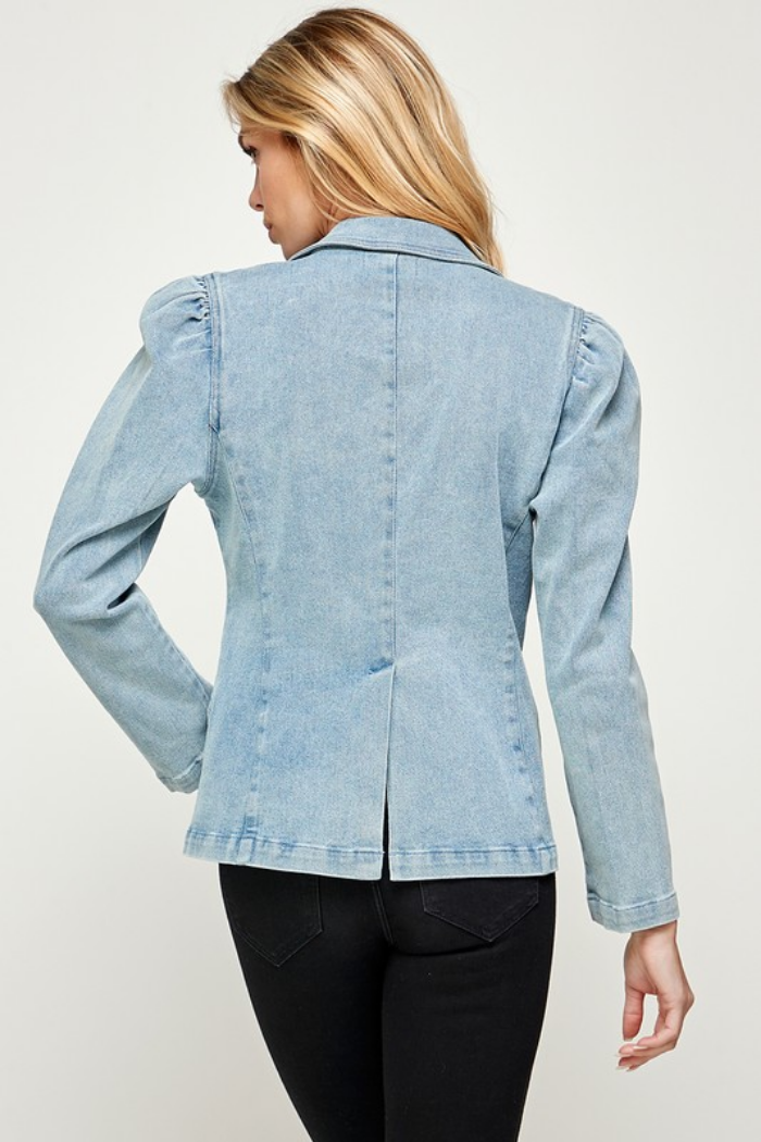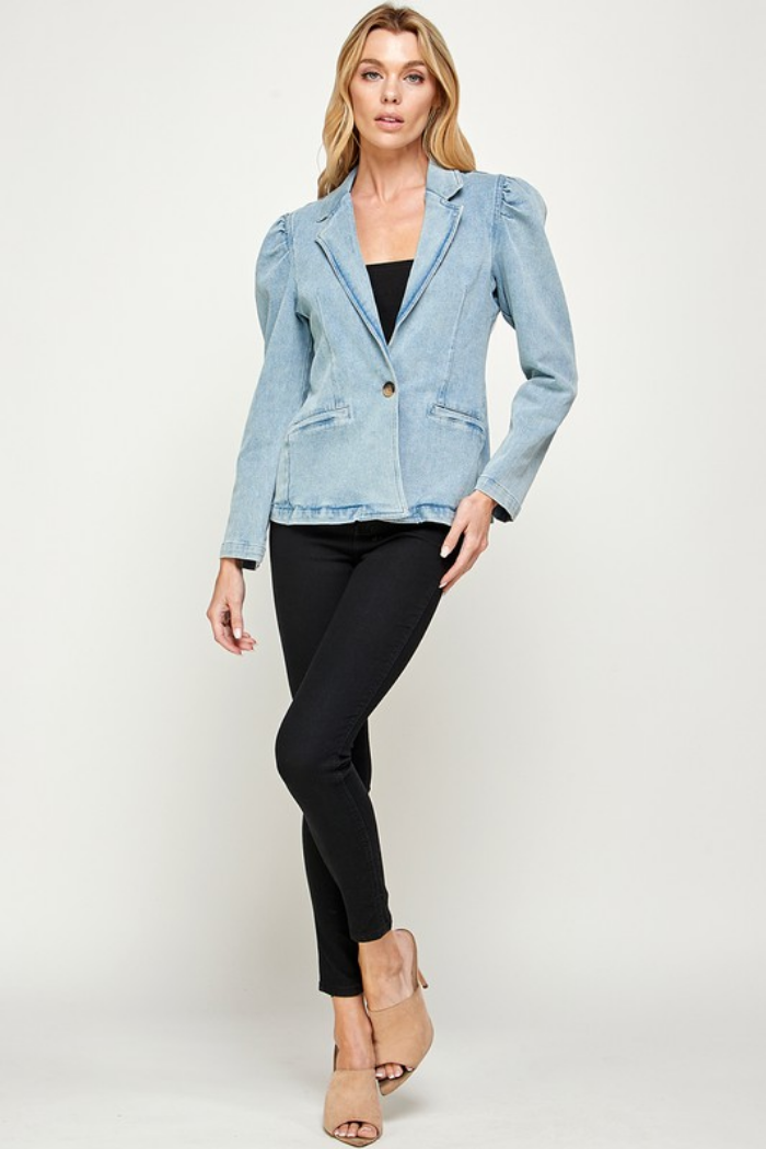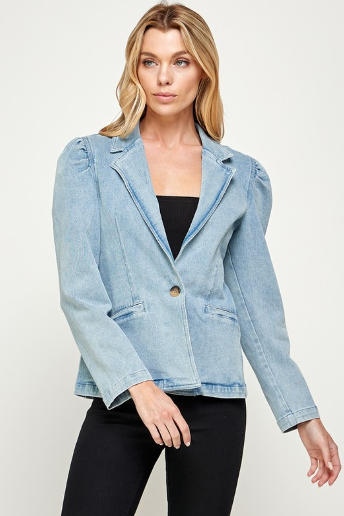 Best of both worlds with a denim casual look and blazer cool. You can pair this with pants or a printed dress.