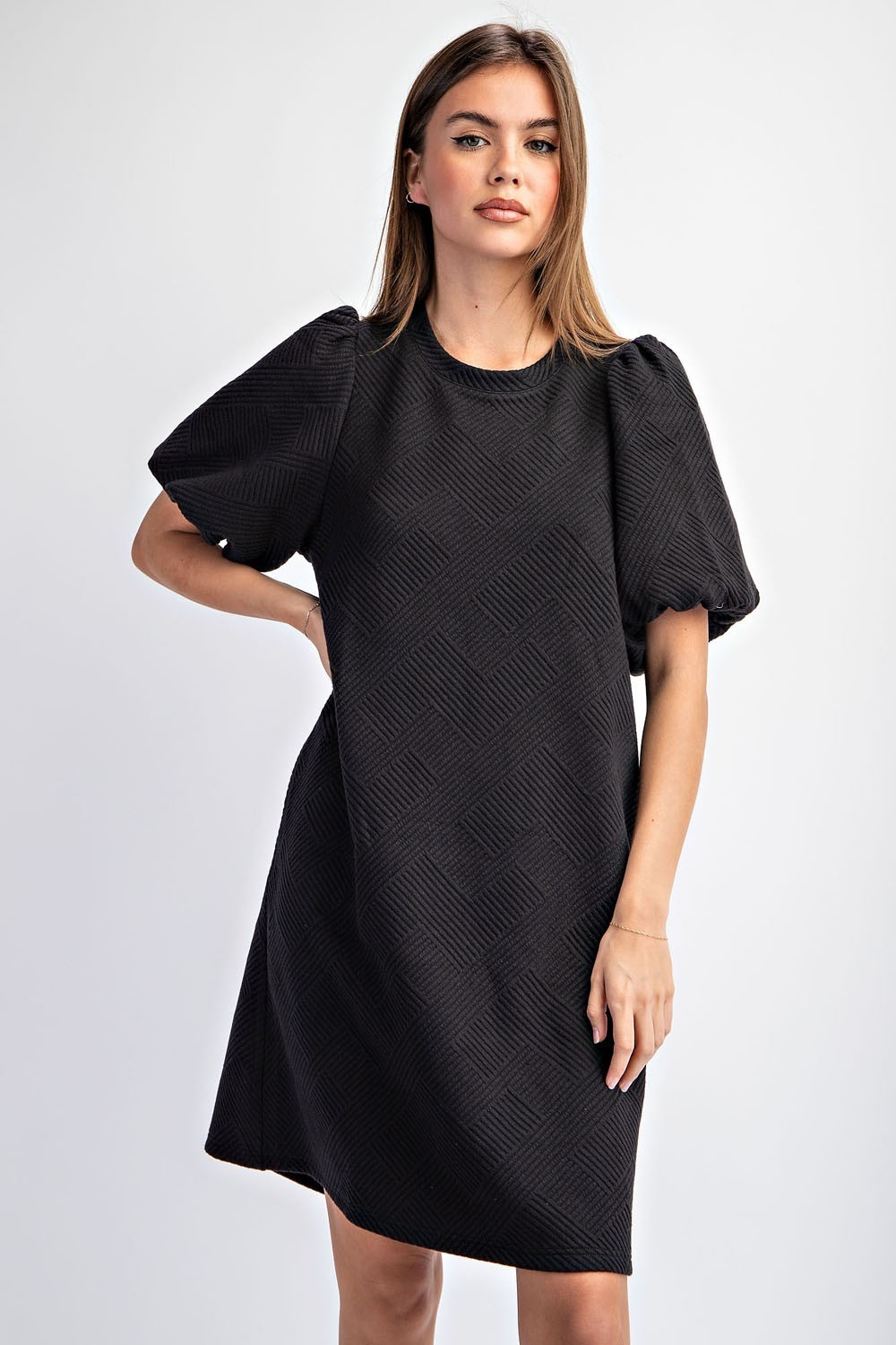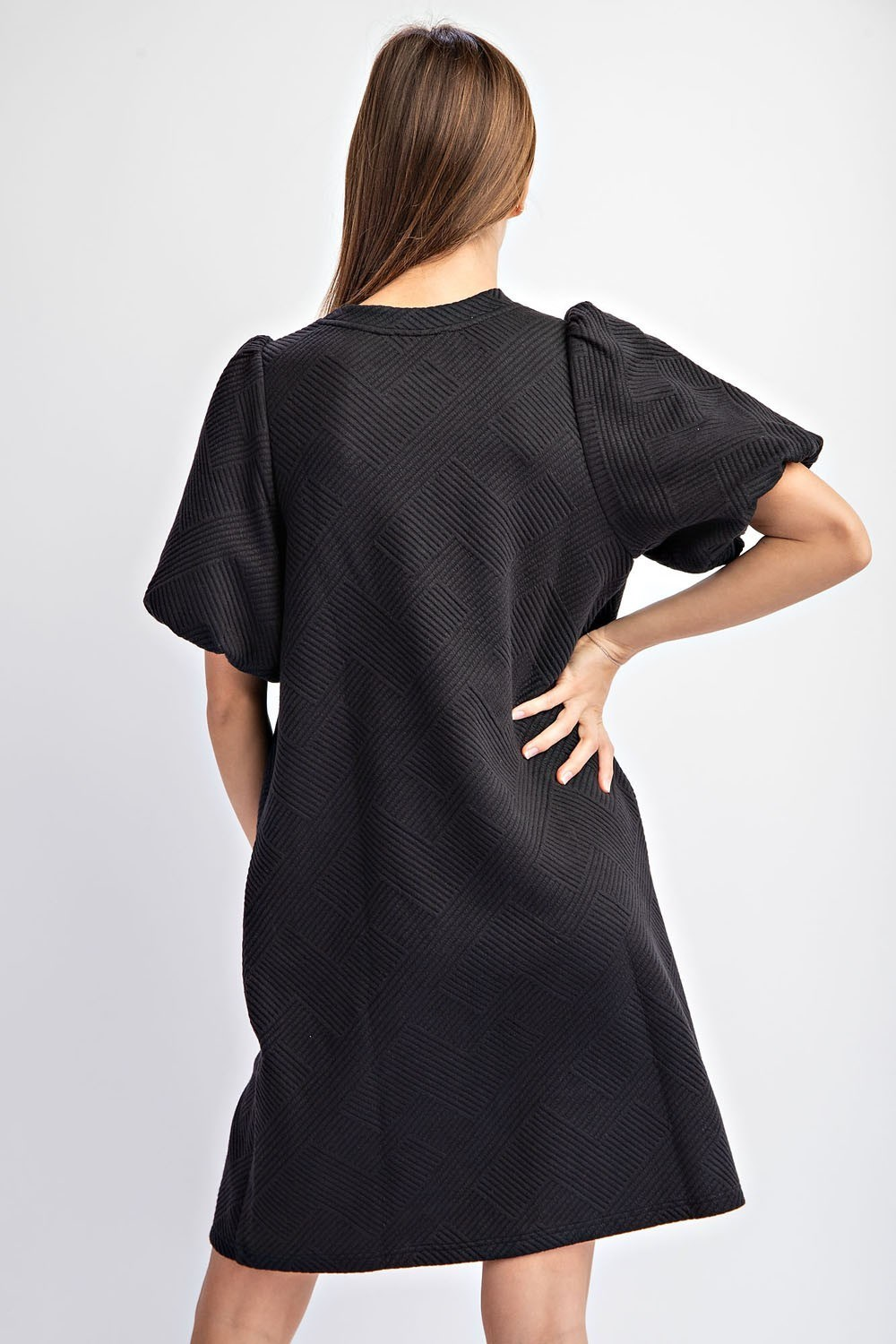Add some texture to your style with the Puff Sleeve Dress! This textured dress has a rounded neckline, two side pockets, and a boxy silhouette.