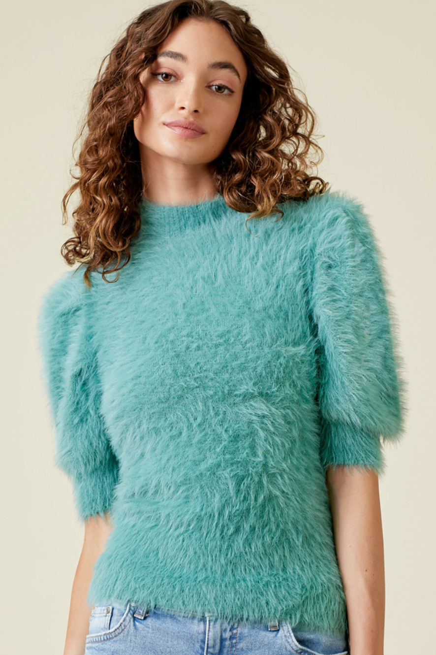 This sweater top will keep you cozy and stylish! Elements of this top include faux fur and a mock neck that are perfect for the cold weather.