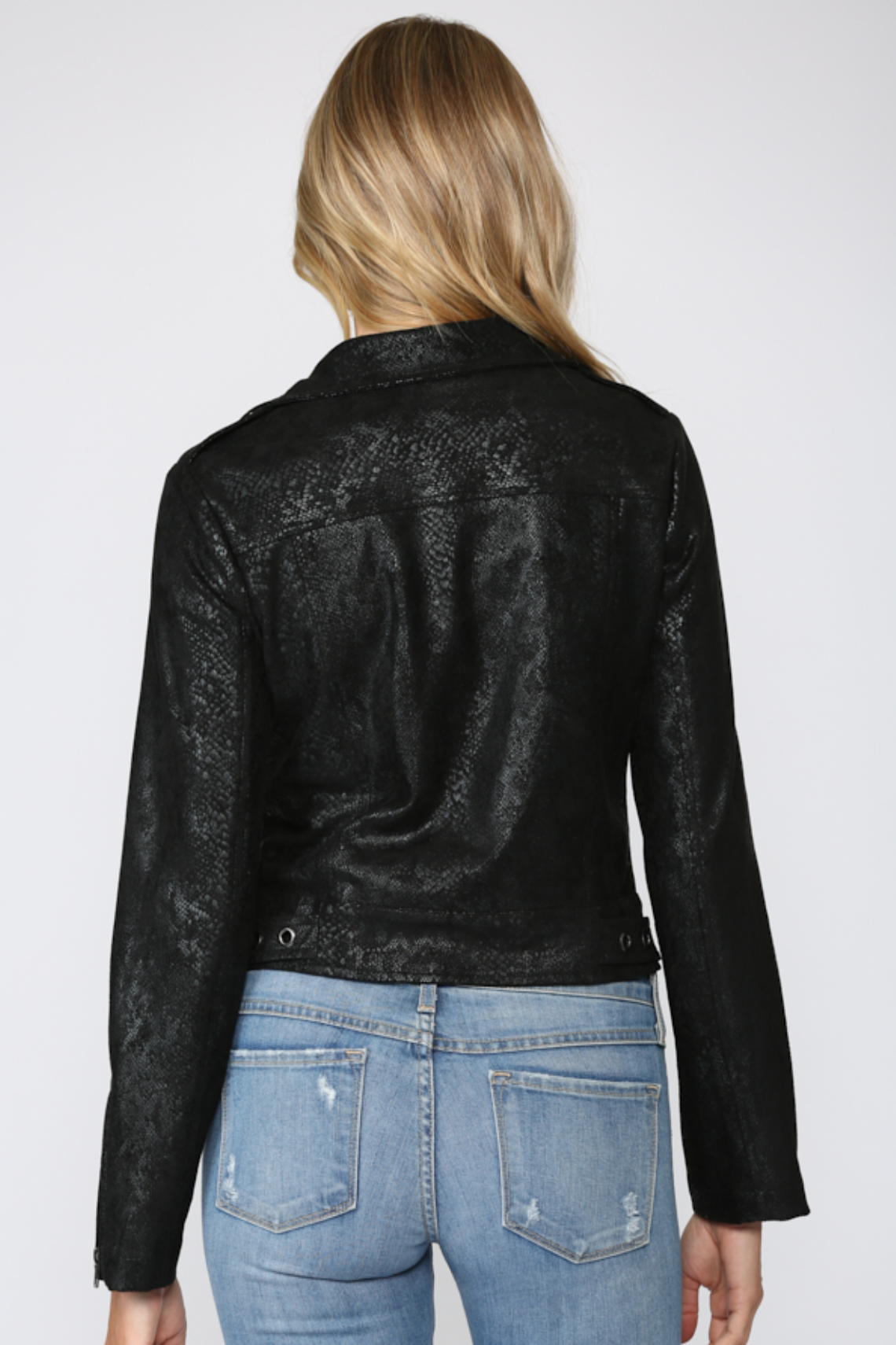 Python Print Faux Suede Moto Jacket