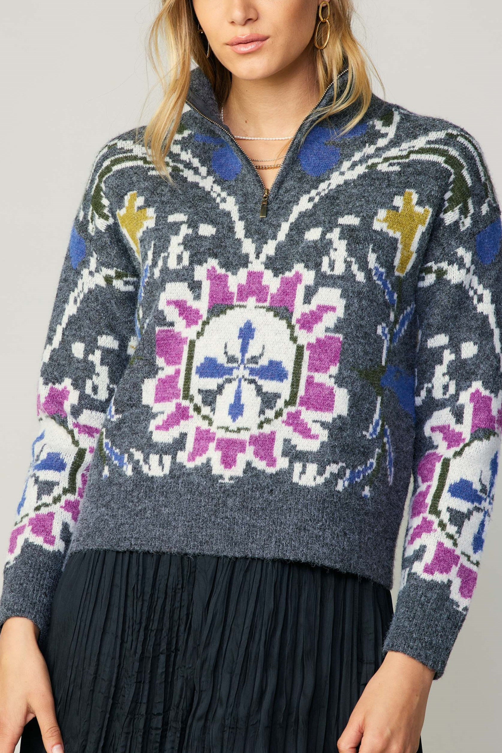 This sweater is a fun option if you are looking to get out of your comfort zone and wear something more eye catching! While still keeping warm, this sweater has a trendy style to it and would look great with a pair of jeans.