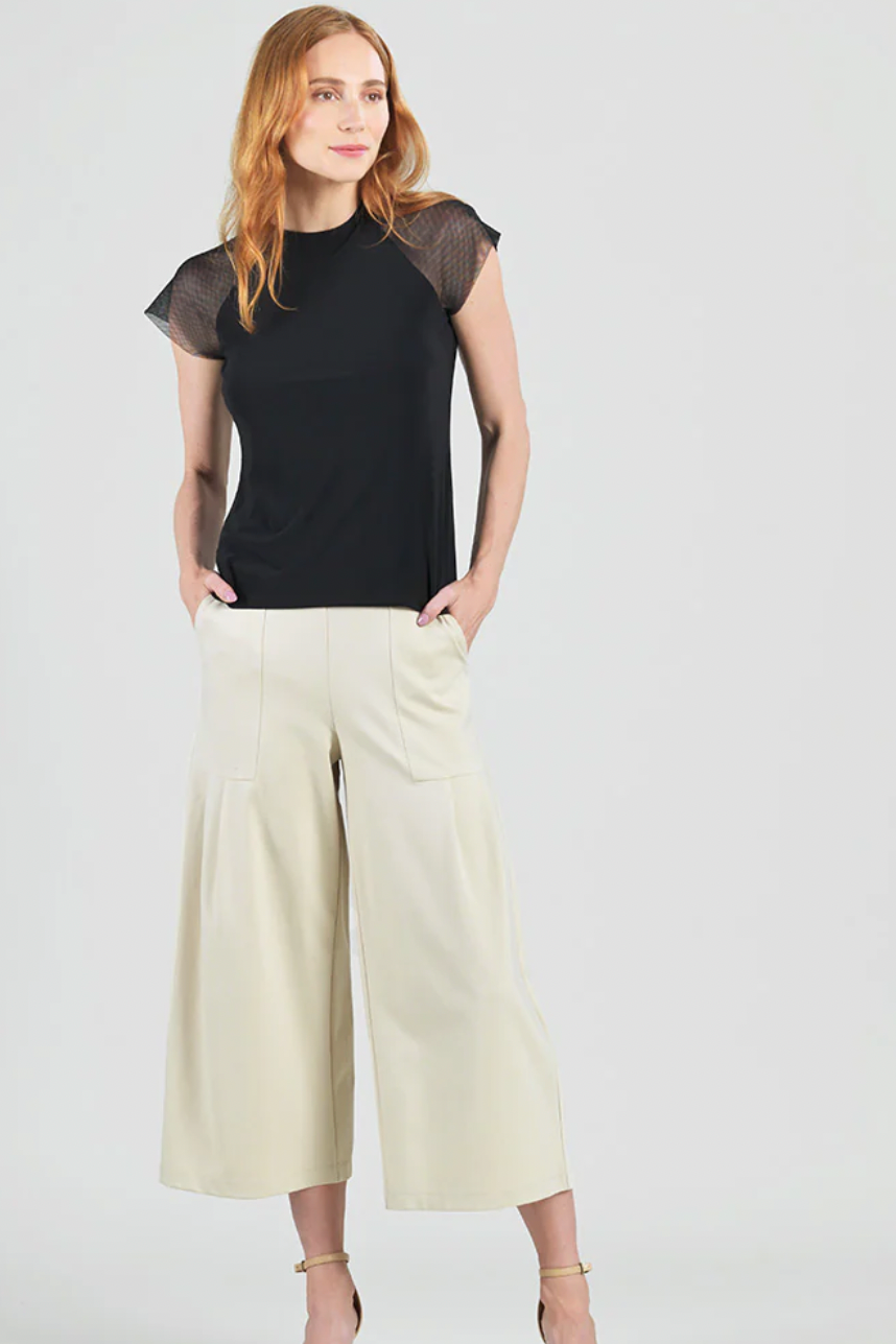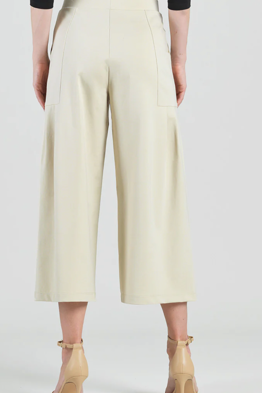 Our Rayon-Ponte Knit Pleated Gaucho Pocket Pant combines the best of both worlds! A truly versatile pant that works for both warm and cool climates! Featuring a loose-fitting wide-leg cropped silhouette, 1.75” pull-on elastic waistband, and side pockets with gorgeous front and back pleated details, designed to naturally flow against the body.