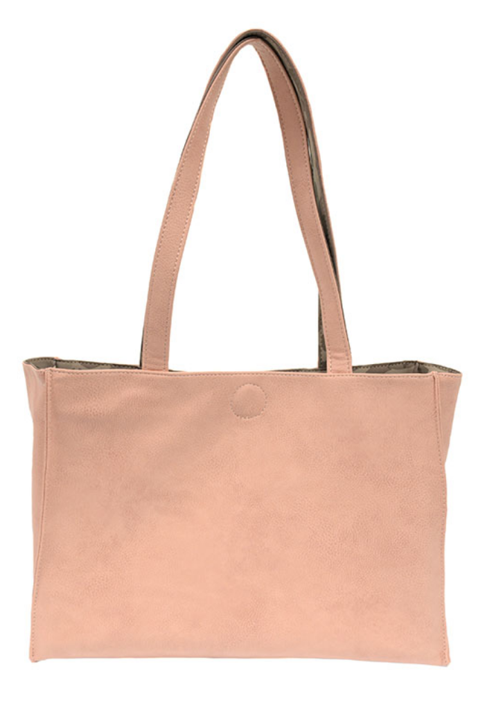 Two looks in one! Switch up your daily look with this fully reversible tote. With solid colors in soft pebbled vegan leather on one side that reverses to fun fashion prints on the other, you can easily change your look from work to play!