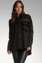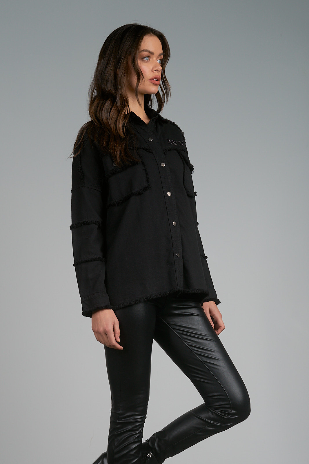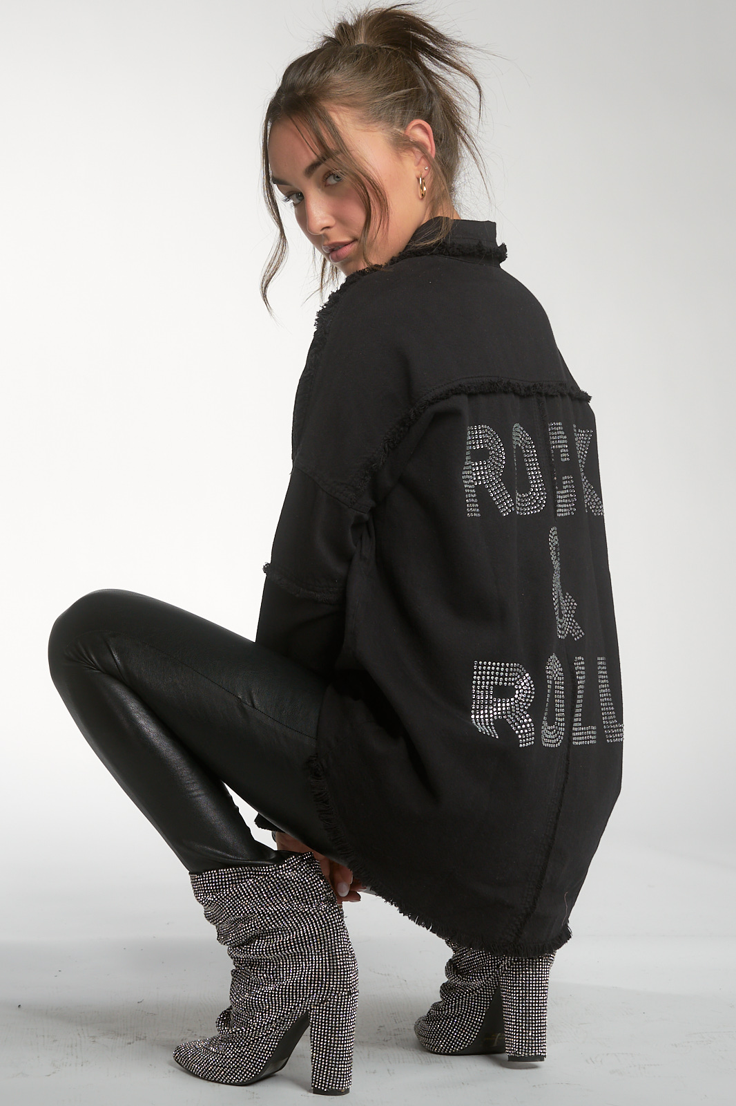 This rock and roll button down is not like the normal rock and roll jackets we have. It has the rhinestone detail on the back making it perfect for a night out.