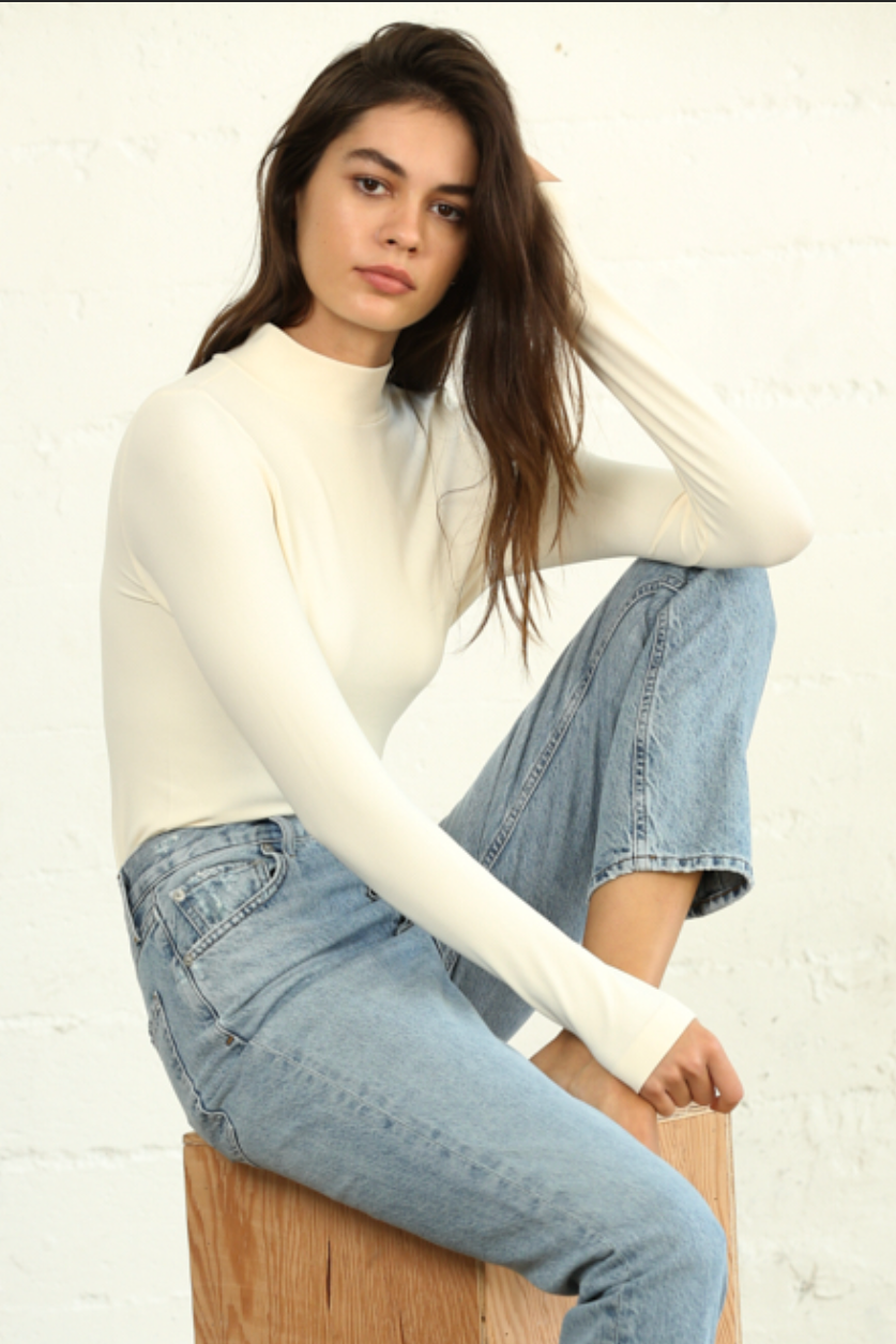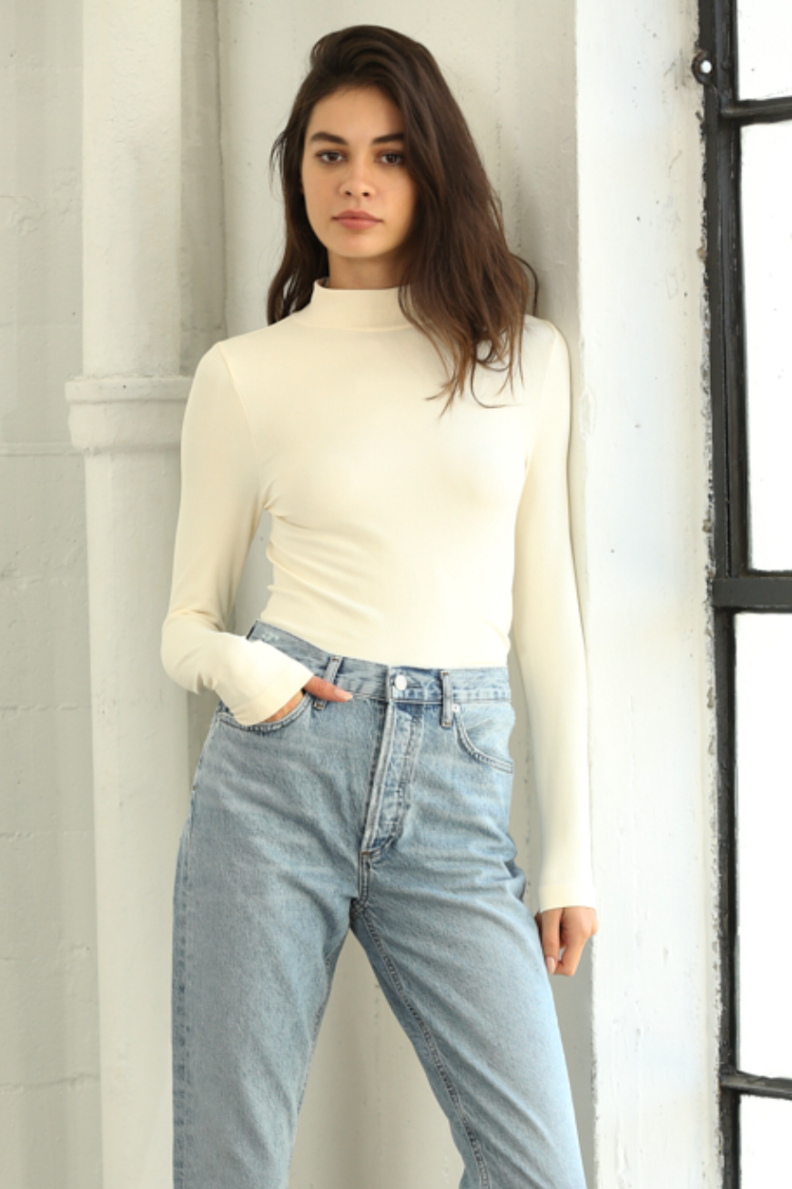 Ribbed Long Sleeve Mock-Neck Top