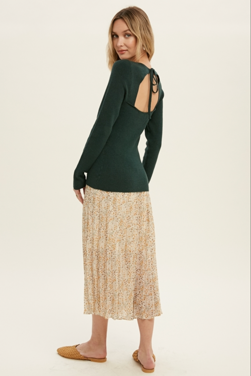 This ribbed knit top is perfect for fall. It is a great fall color and looks great with black or dark denim bottoms. Perfect for a night out.