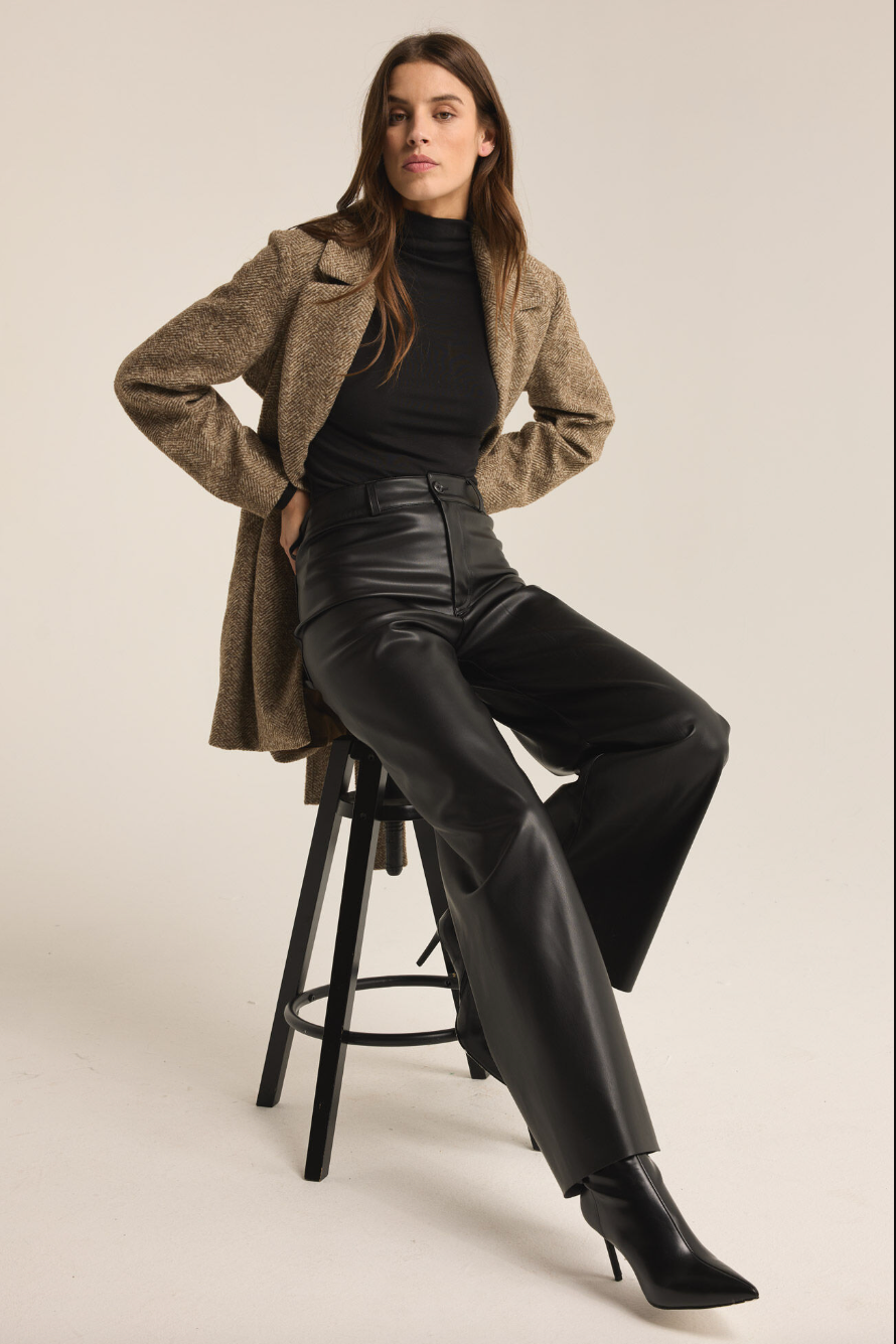 Step into effortless style with these high-rise, full-length pants crafted from midweight faux leather. Featuring a zip fly with button closure and back pockets, they offer a perfect blend of edge and sophistication for any look.