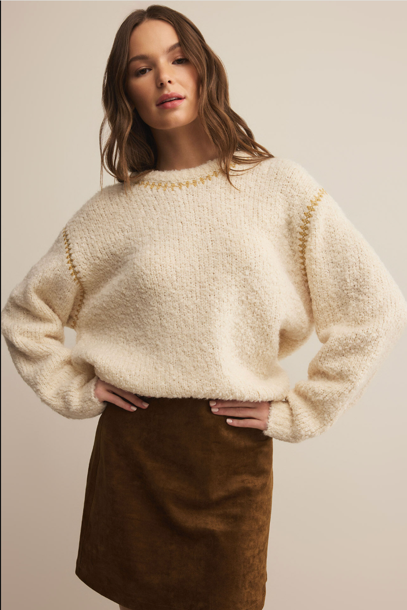 This plush sweater is the perfect mix of relaxed and refined, thanks to lofty high-pile yarns, delicate crochet insets, and ribbed trim. Toss it on over denim or a skirt for that laid-back kind of cool.